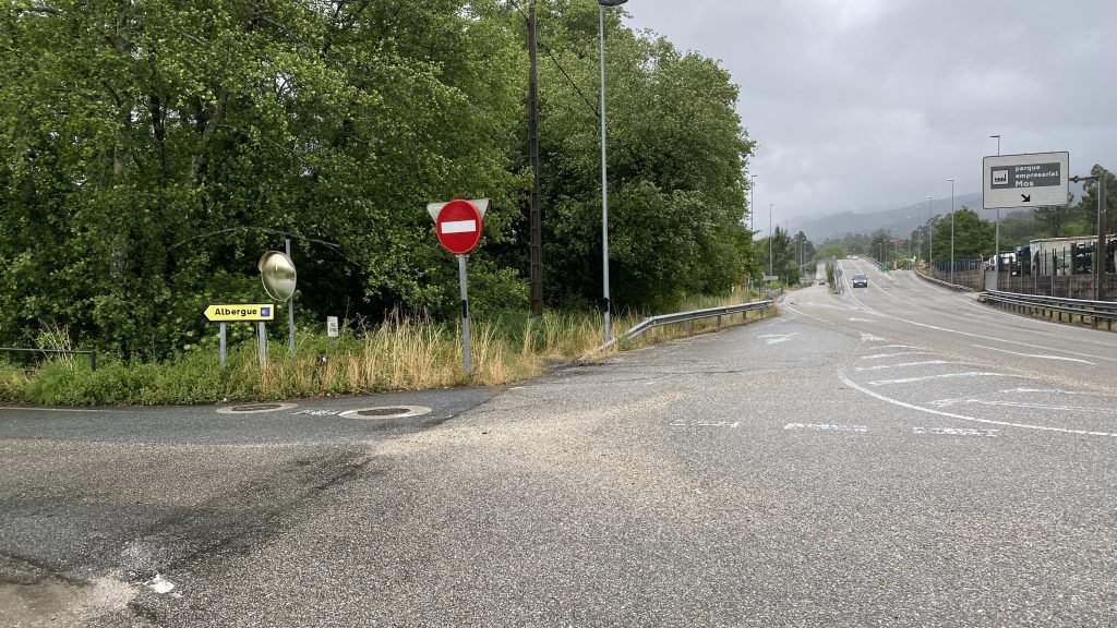 Es ist nass, und teile des Weges sind unter Wasser. Es geht zum Teil über Strassen, mit Autos die relativ rücksichtslos durch Pfützen fahren. Noch 112 km bis Santiago de Compostella, und immer wieder kreuzt die Autobahn. Da geht es schneller.