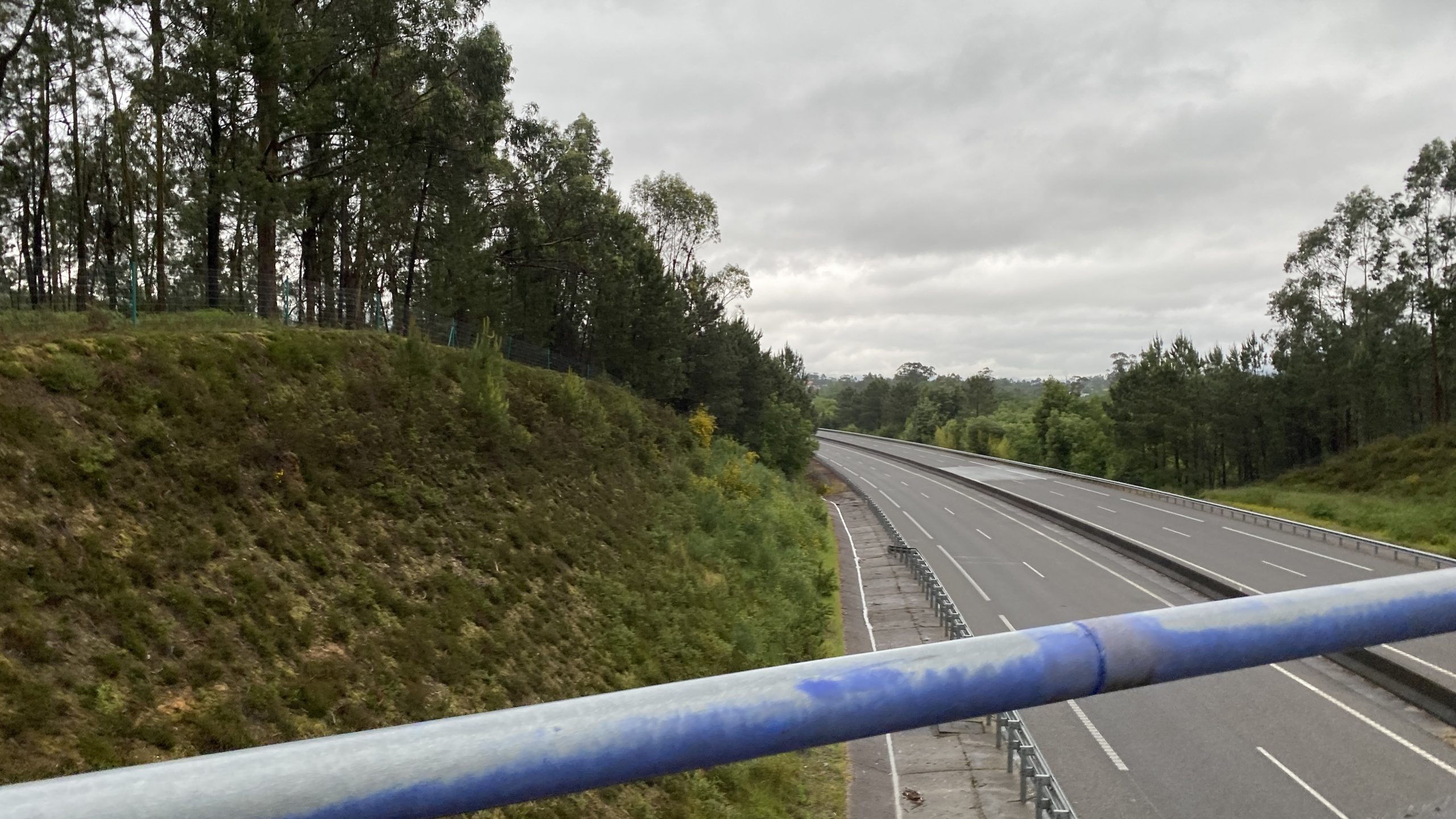 Es ist nass, und teile des Weges sind unter Wasser. Es geht zum Teil über Strassen, mit Autos die relativ rücksichtslos durch Pfützen fahren. Noch 112 km bis Santiago de Compostella, und immer wieder kreuzt die Autobahn. Da geht es schneller.