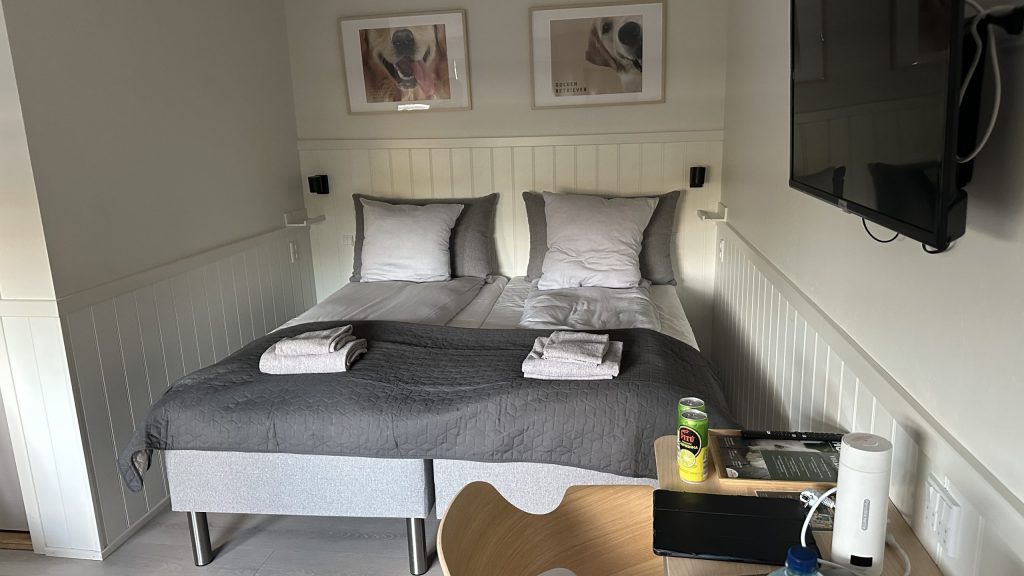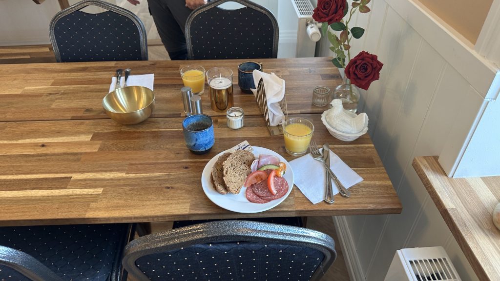 Wir hatten eine gute Unterkunft in Dänemark. Eine Art Motel mit sehr gutem Frühstück. Das Besondere war, dass in jedem Zimmer ein Futternapf und ein Hundebett war.