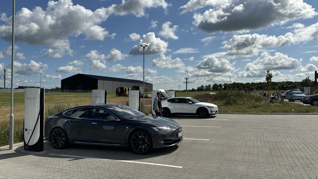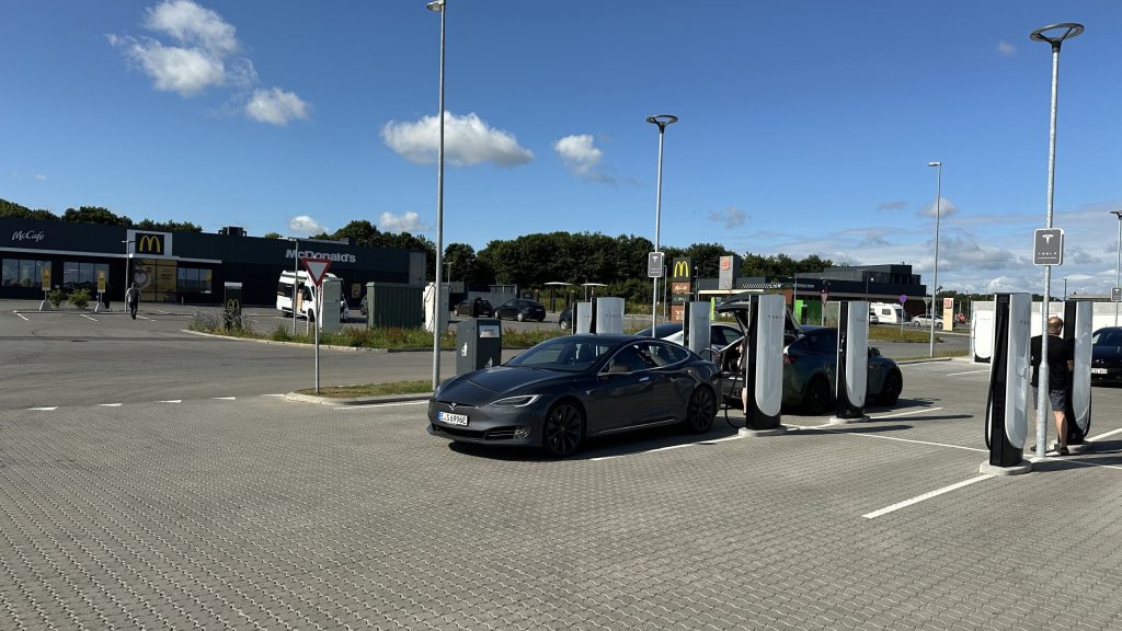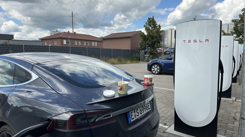 Am Supercharger machen wir uns Mittag und einen Kaffee. Jürgen hatte extra einen Spoiler anbringen lassen. Perfekt für die Ramendosen.