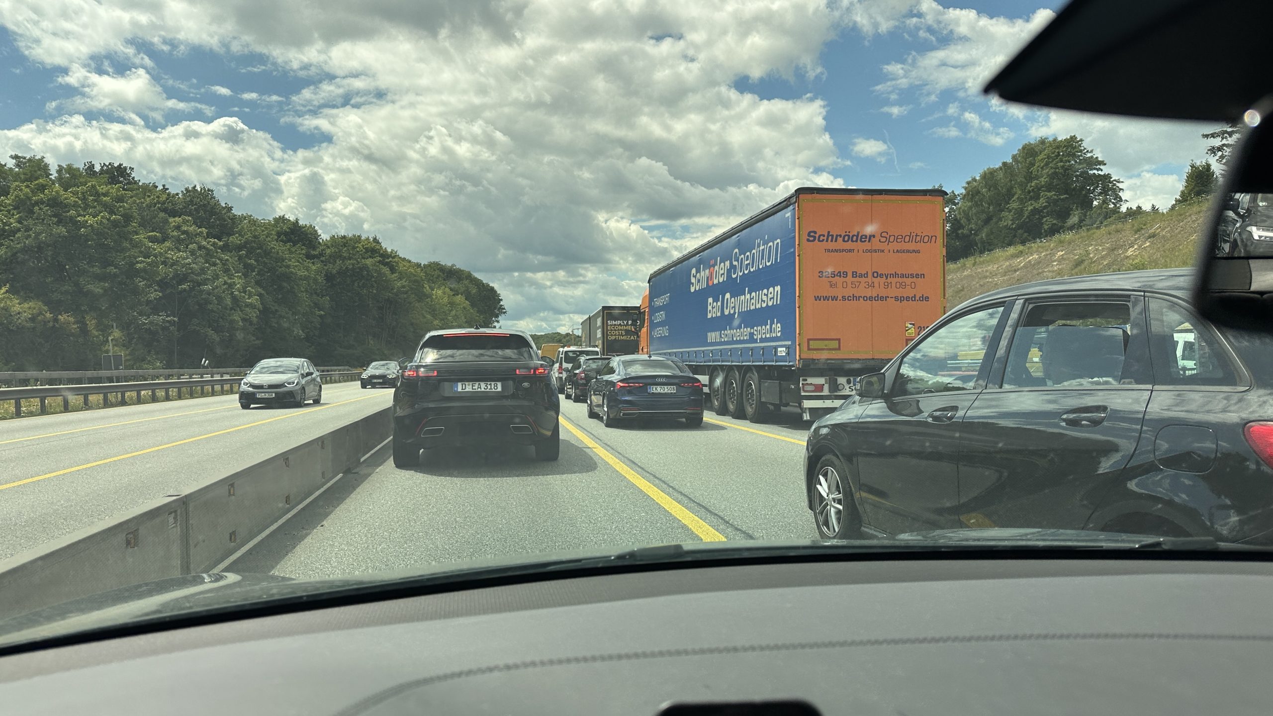 Bis Hamburg sind wir ganz gut durchgekommen, dann begann der Stau. Hamburg vor und im Elbtunnel. Kurz vor Bremen das gleiche noch einmal. Kein Vergleich mit unseren Fahrten in Norwegen. Die Staus haben uns drei Stunden gekostet.