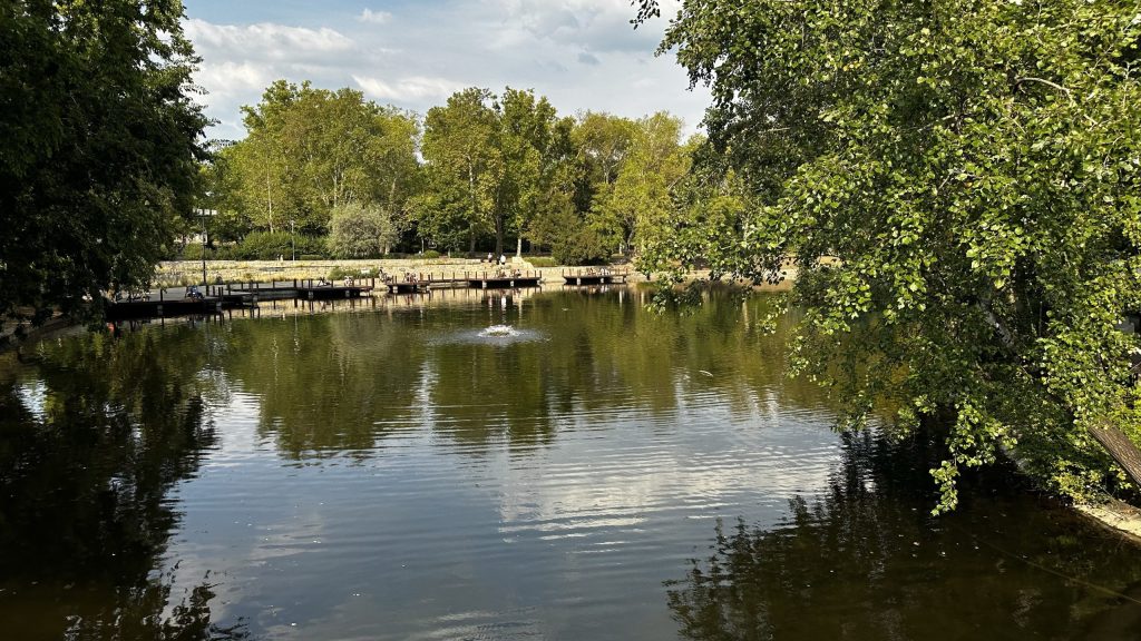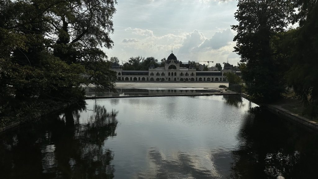 Hinter dem Platz der Helden ist das Stadtwäldchen, mit einer der ältesten Schlittschuhbahnen Europas. Die wird 100 Tage im Jahr betrieben, und die Saison beginnt Ende November.
