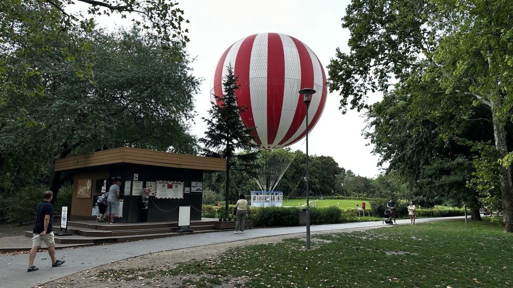 Im Stadtwäldchen kann man eine Ballonfahrt buchen. Mit dem Mittagessen kommt der Ballon mit uns nicht hoch – also lassen wir es 😎.