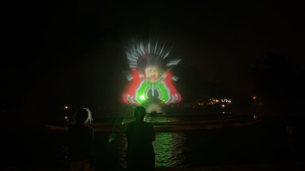 Nach der Musik gibt es eine Videoaufführung in einer Art Sprühnebel. Einfach Toll!