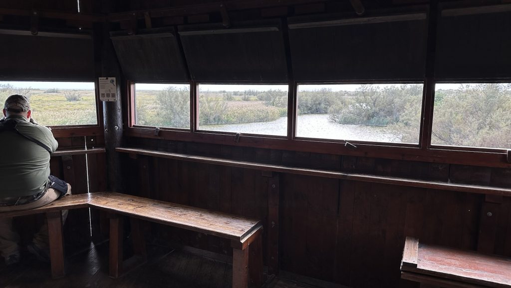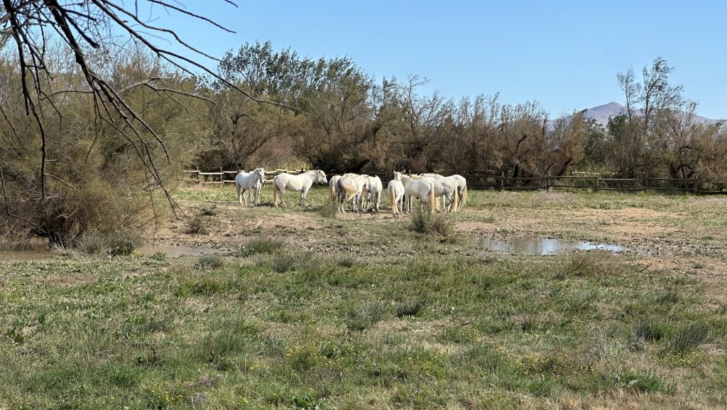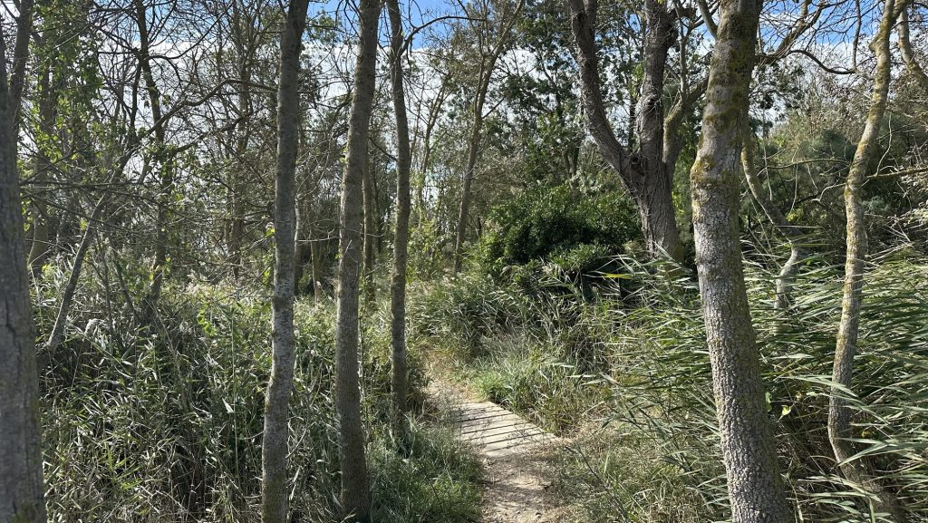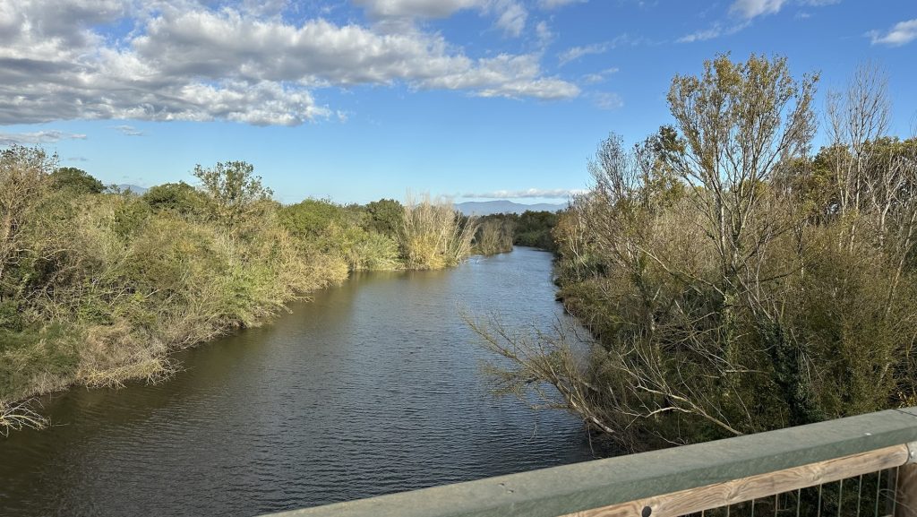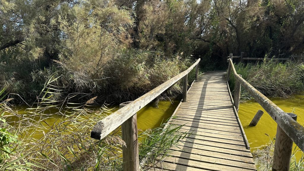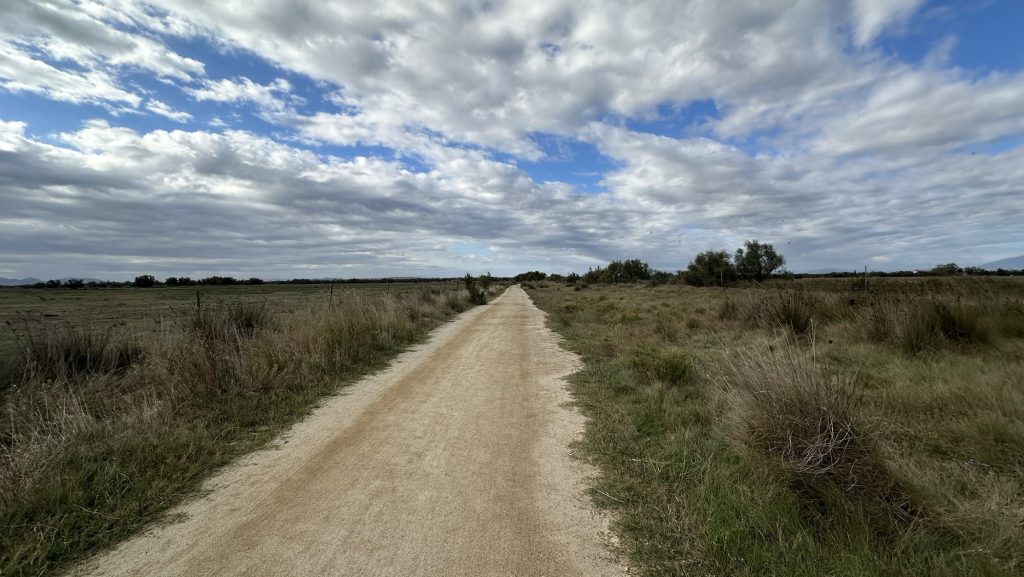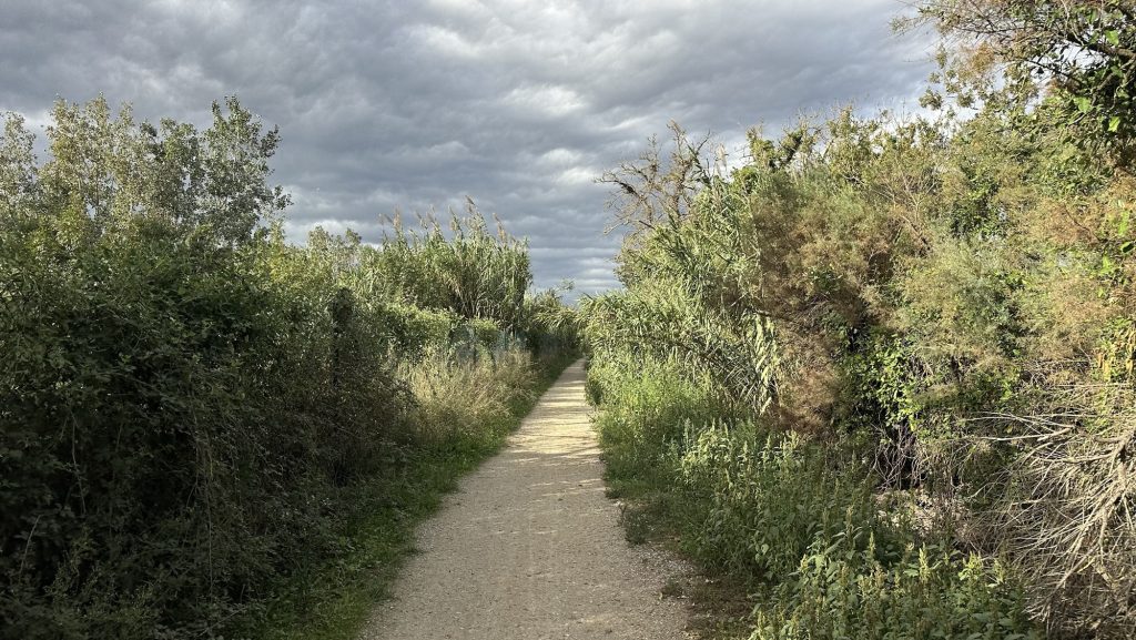 Ich folge ihm nach Süden zum Naturschutzgebiet, das man umlaufen muss. Zusätzlich ist ein Teil des GR92 abgesperrt, da ist ein PV Kraftwerk, dass man ebenfalls umlaufen muss. Aber der Weg ist sehr schön, entlang des Naturschutzgebiet. Immer wieder gibt es Aussichtspunkte zu Seen, wo im Frühjahr Vögel nisten. Jetzt ist da kaum ein Vogel zu sehen.