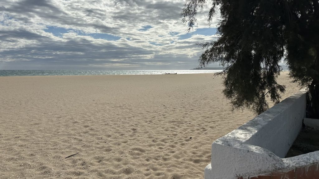 Am Ende des Nationalpark ist ein Campingplatz, der geschlossen ist. Leider umschließt der unüberwindbare Bauzaun auch den Weg, so dass man durch den Sand laufen muss.
