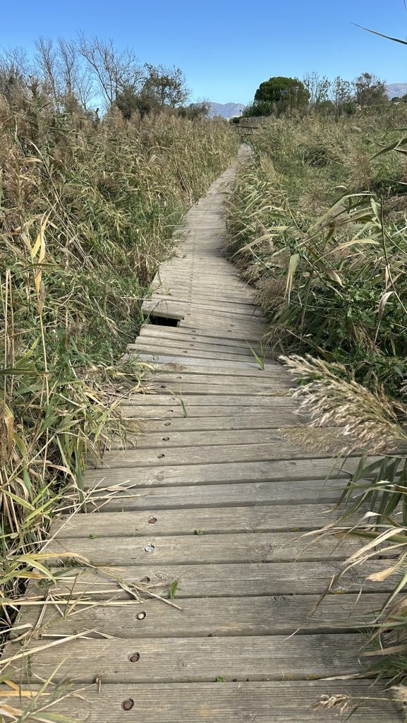 Teilweise geht es durch schilfbewachsene Sumpfgebiet auf Holzstegen. Die sind zum Teil extrem brüchig. Gut, dass das hier nicht die Ever Glades sind.🐊