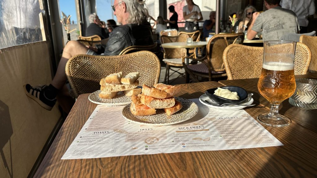 Für die Wartezeit bestelle ich Portion de pain à tomato, und Portion de pain allioli. Sie zögert kurz, ich nicke nur.
