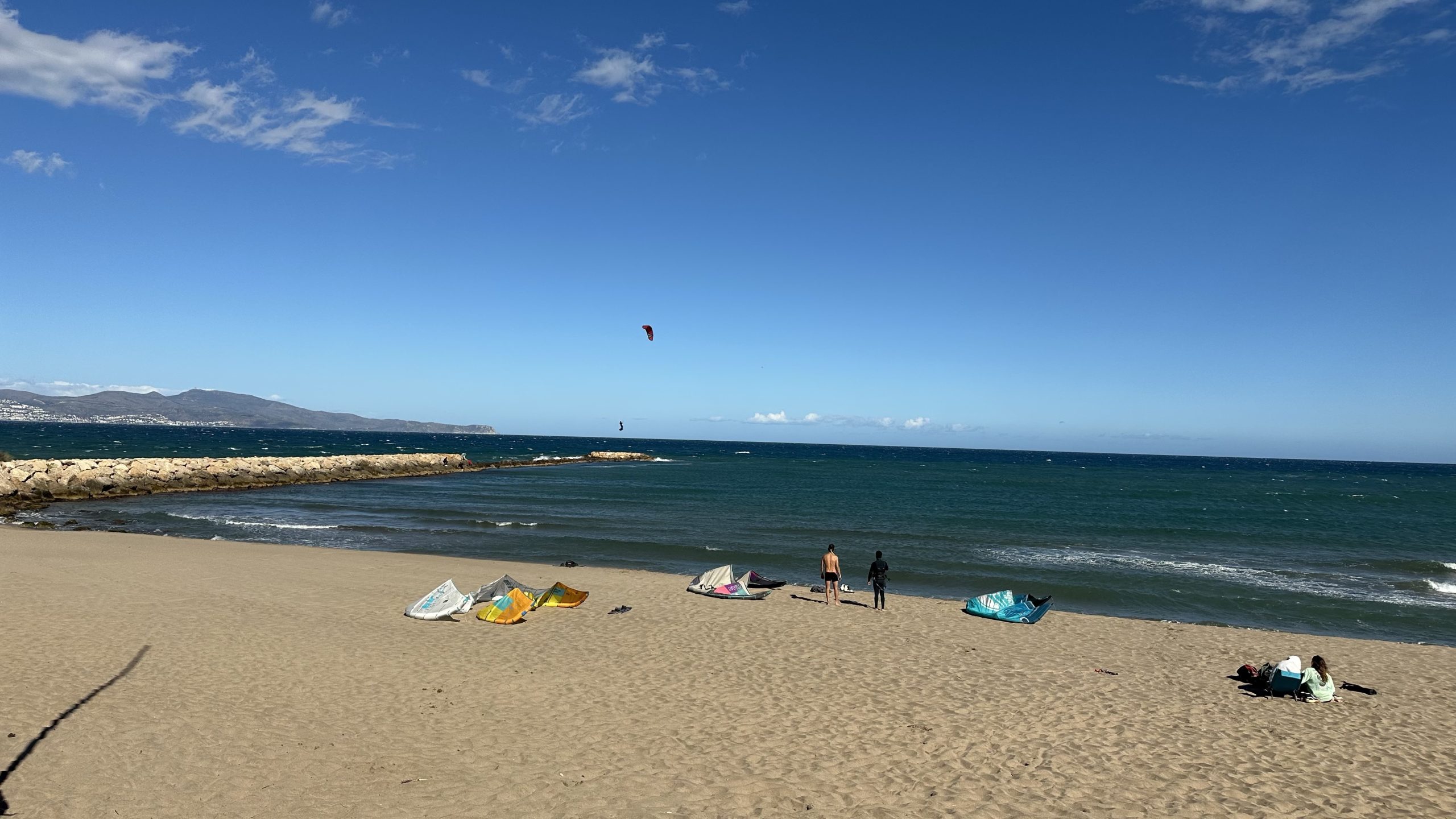 Gegen 15:30 erreiche ich wieder die Küste, bei Sant Marti d‘Empúris. Ein spektakulärer Anblick. Kite Surfer sind mehrere Meter in der Luft.