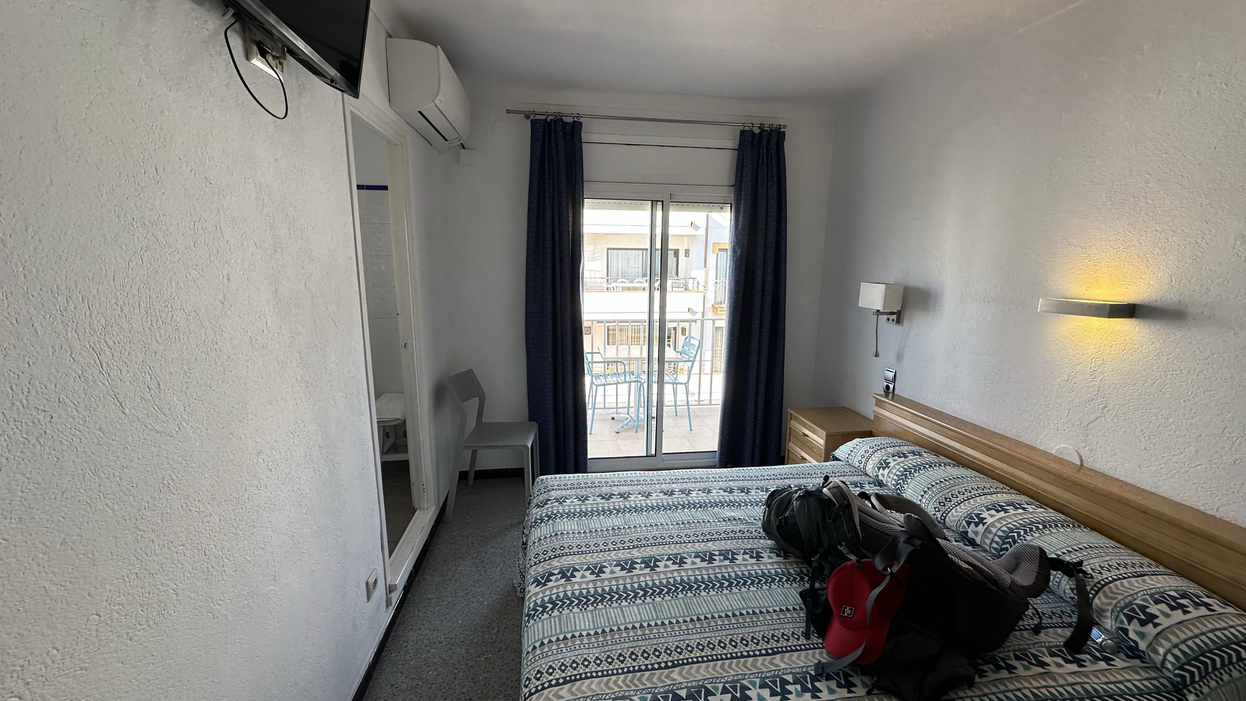 Schließlich komme ich in L‘Escala an, und finde mein Hotel. Die riesige Rezeptionistin hatte schlechte Laune, das war deutlich zu sehen als sie zur Rezeption kam. Egal, das Zimmer ist gut. Hat Klima, Balkon, Dusche mit heißem Wasser. Das alles für 43€.