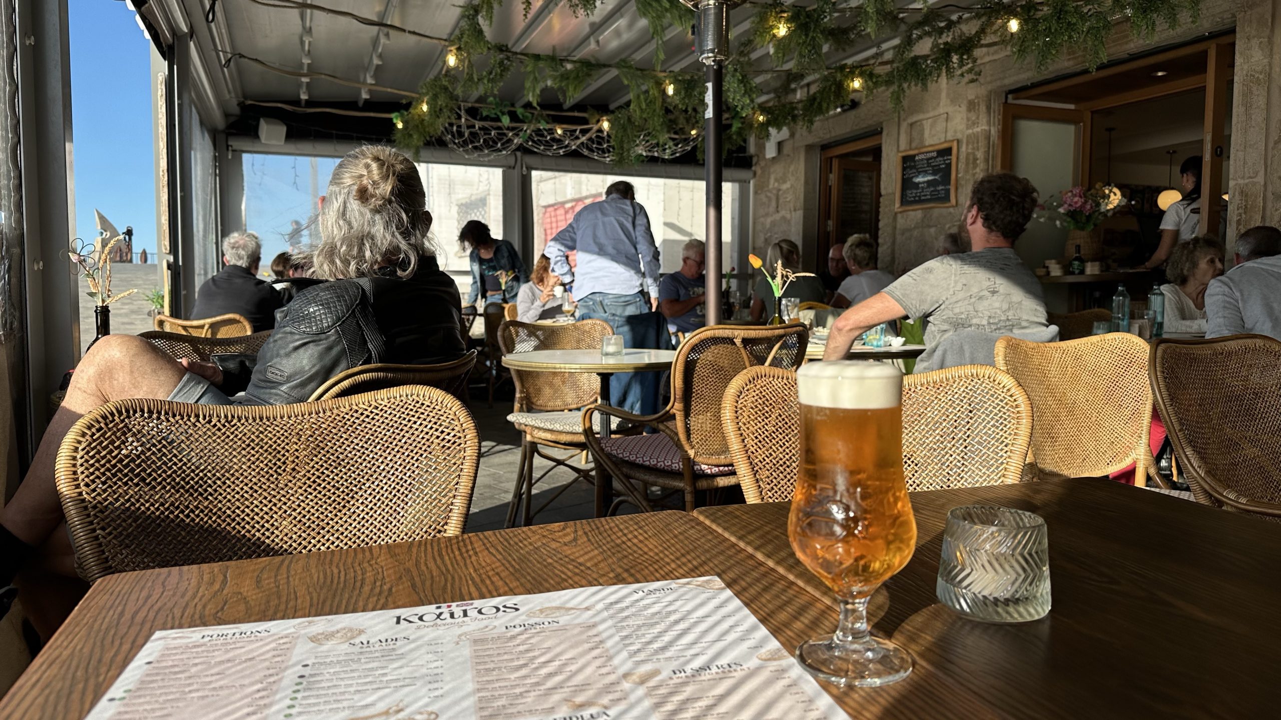 Ich frage die freundliche Bedienung nach einem Tisch für eine Person. Sie fragt ob ich auch essen möchte, natürlich, Paella! Sorry only from 7. Das heißt, jetzt gibt es nur Snacks. Es ist 17:10.