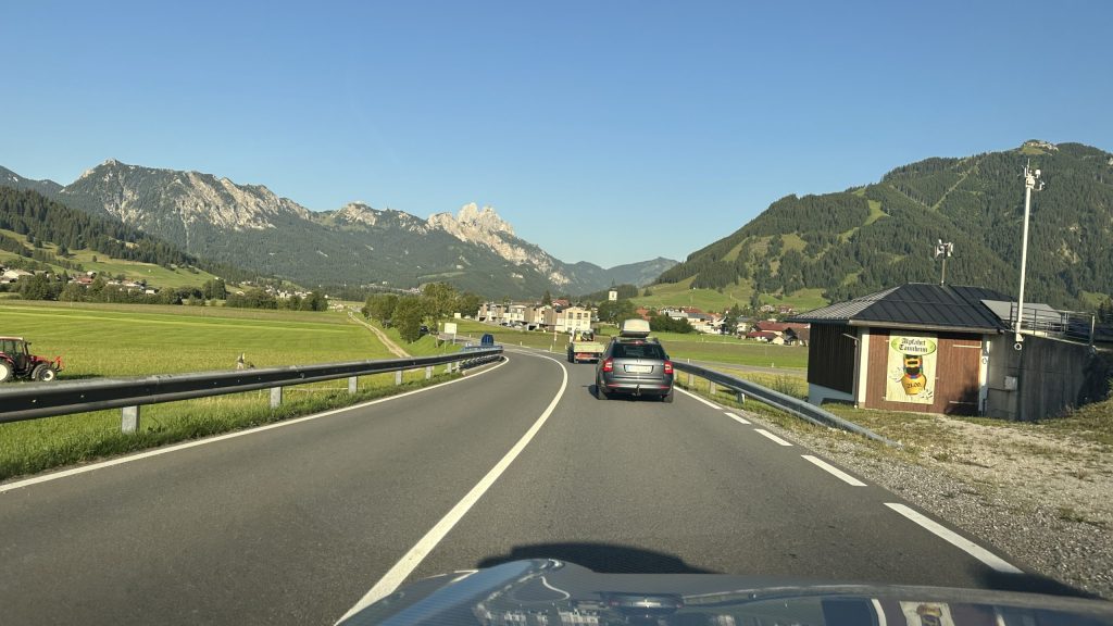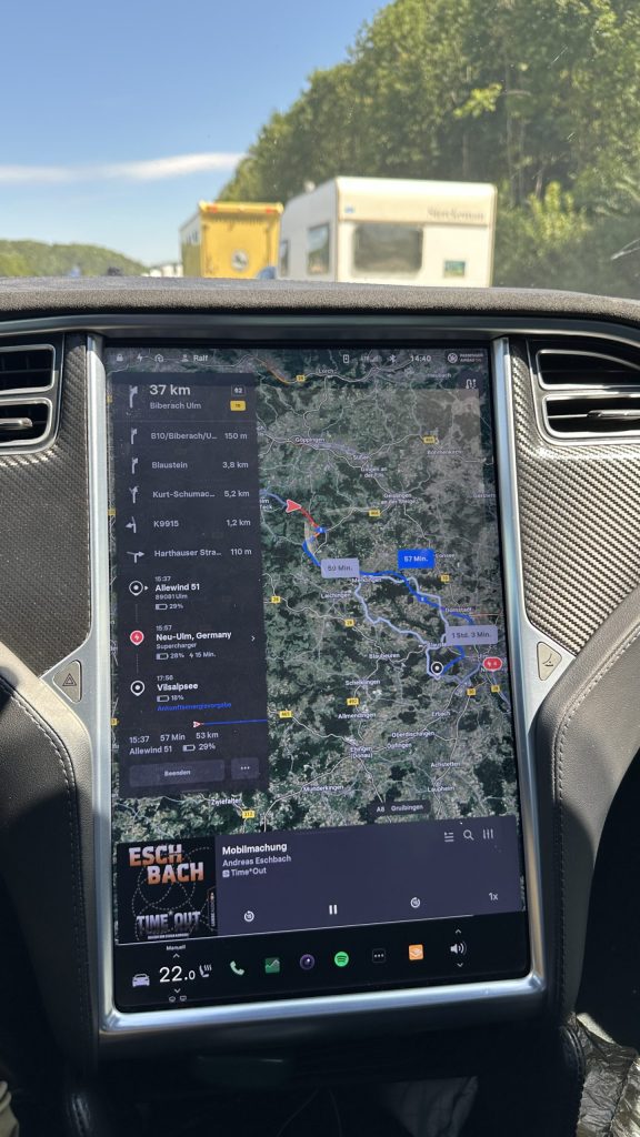 Die Weiterfahrt (mit Tesla) war dann relativ entspannt. Von 32°C viel die Temperatur auf angenehme 23°C im Allgäu.
