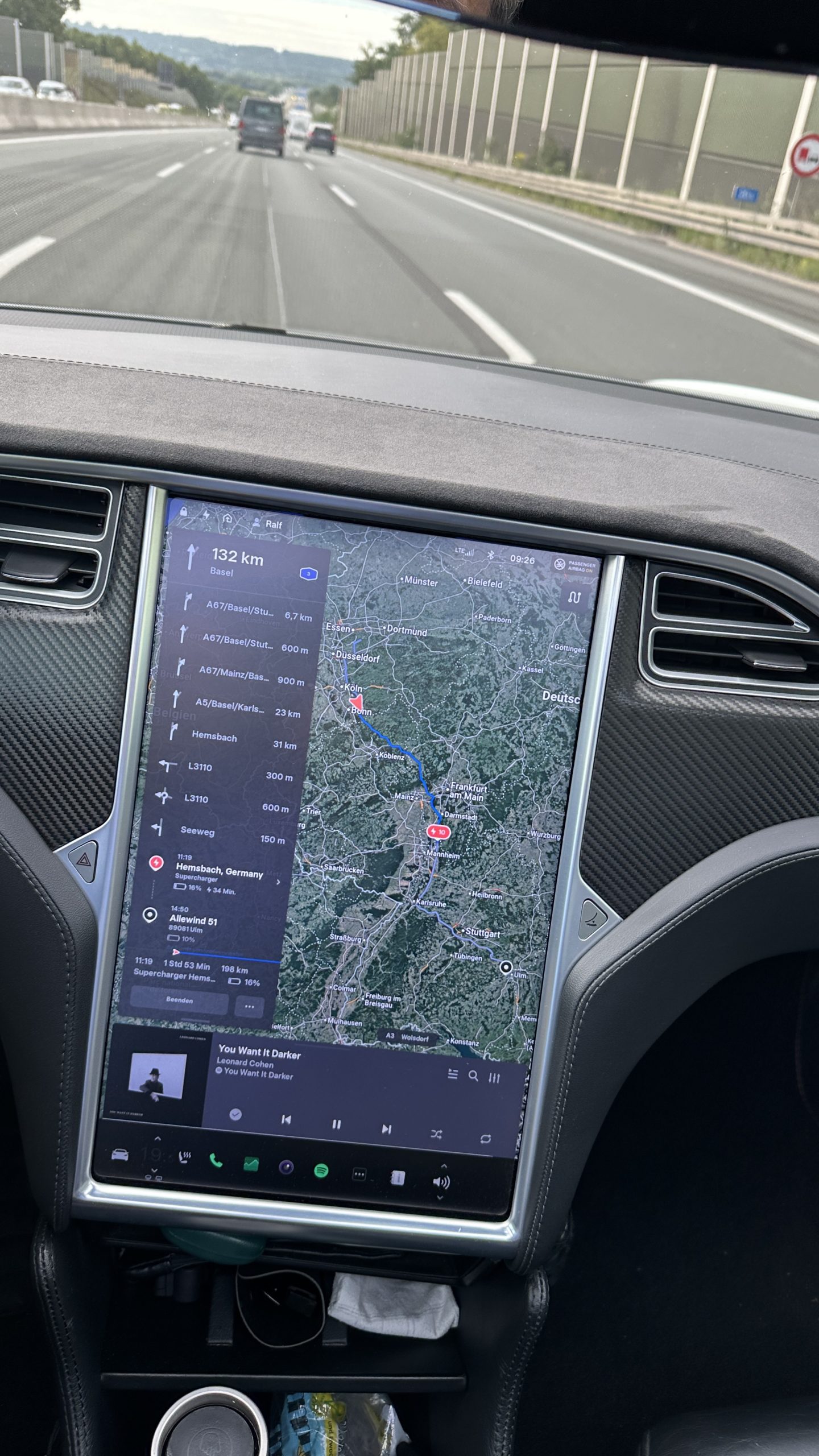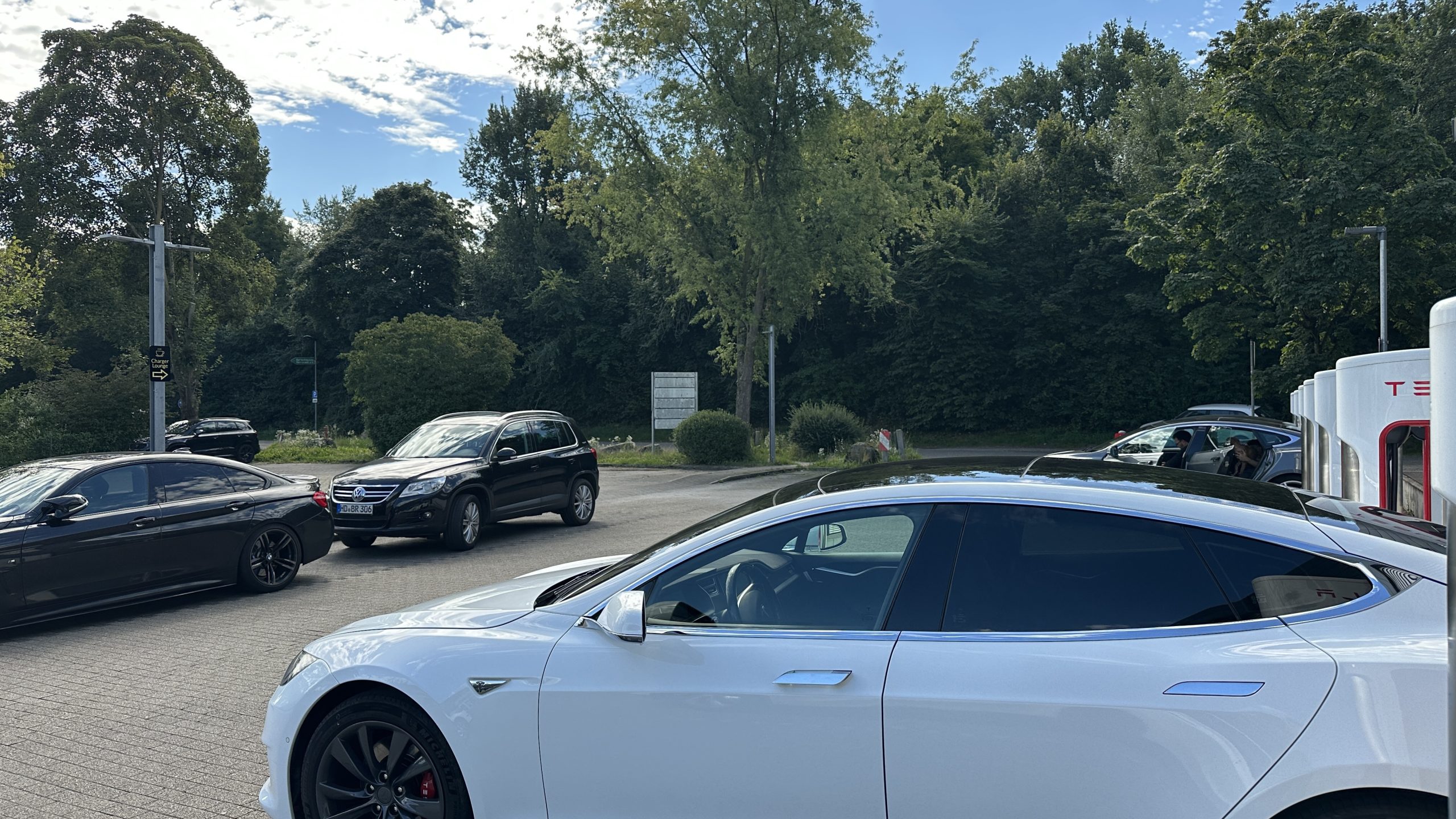 Um 08:30 bin ich losgefahren, und gut durch Köln und Frankfurt gekommen. Laden musste ich am Supercharger Hemsbach.