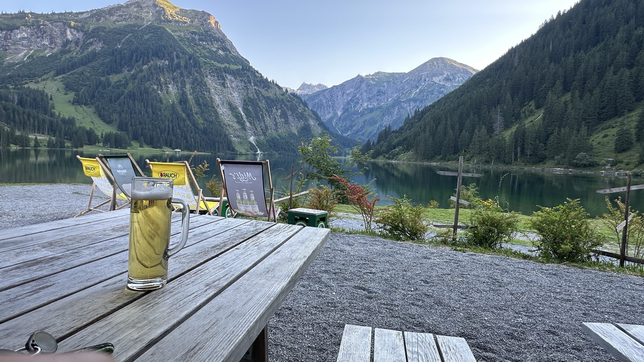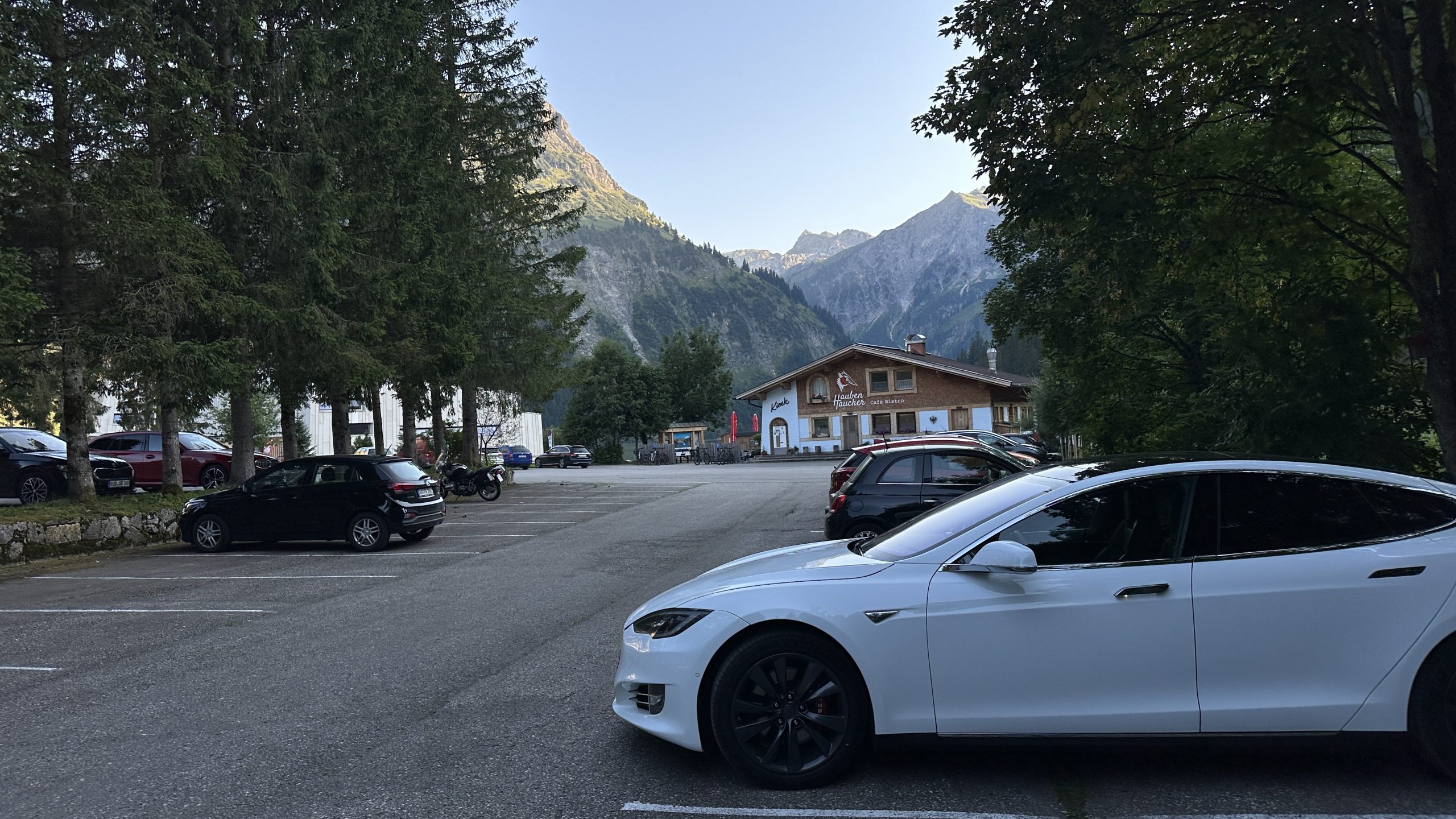 Die Weiterfahrt (mit Tesla) war dann relativ entspannt. Von 32°C viel die Temperatur auf angenehme 23°C im Allgäu.