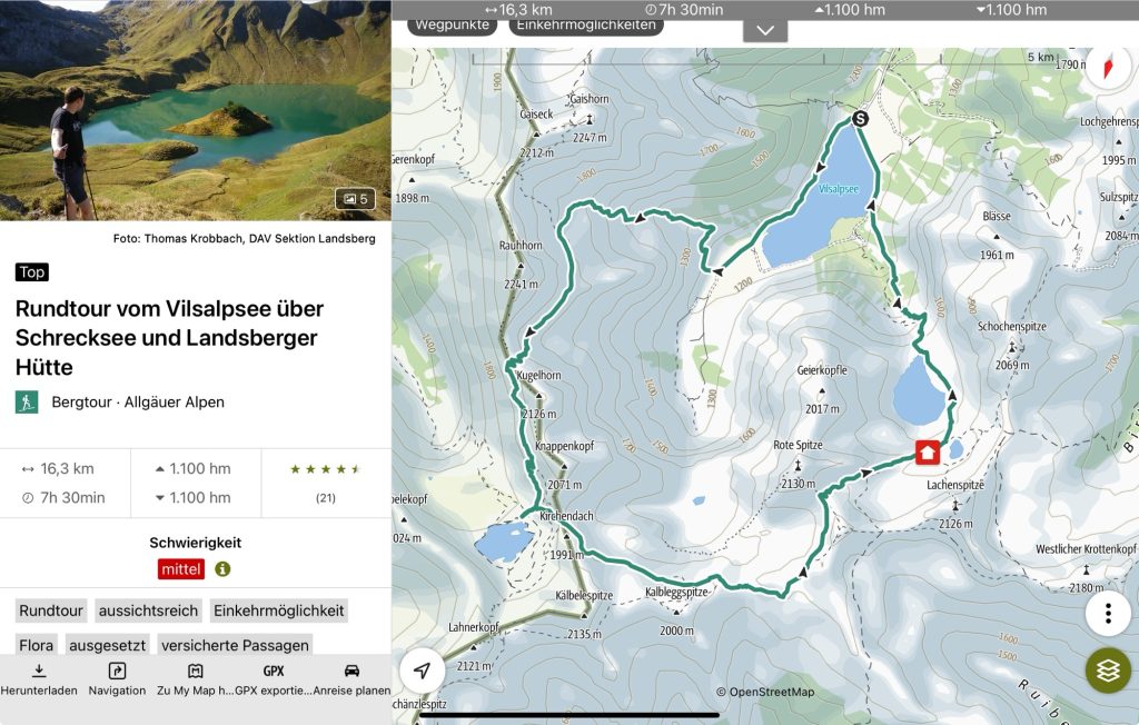 Zufällig hatte mir Andrea von einer Wanderung Schrecksee, vom Vilsalpsee über die Landsbergerhütte.