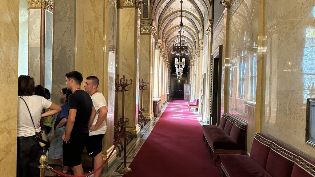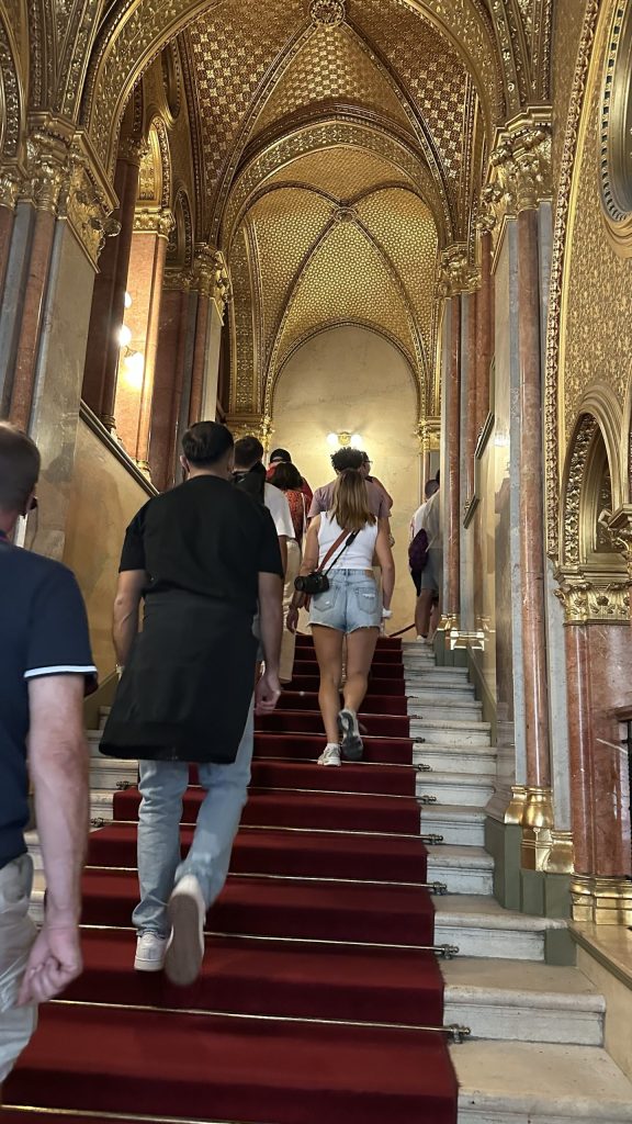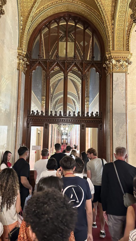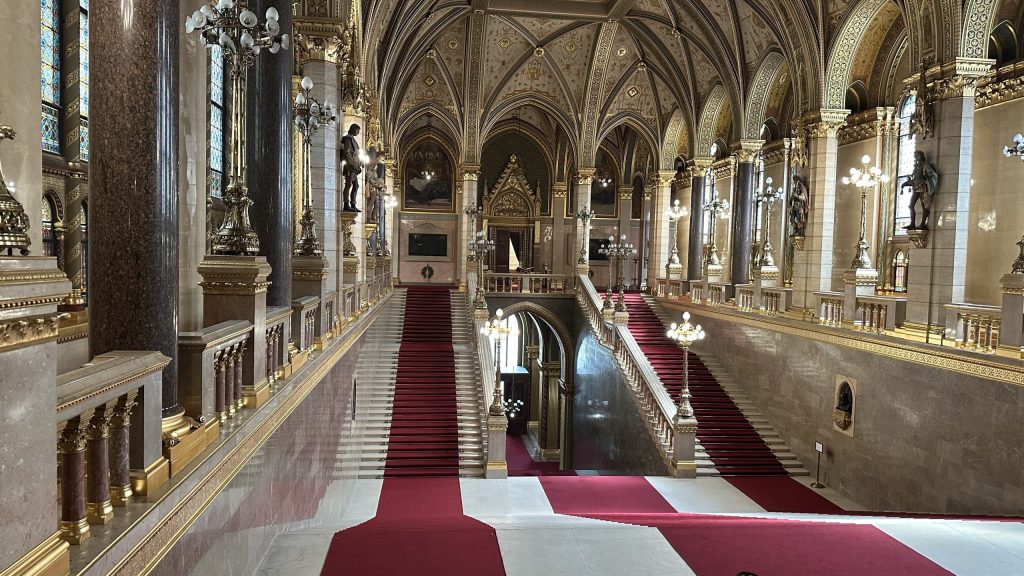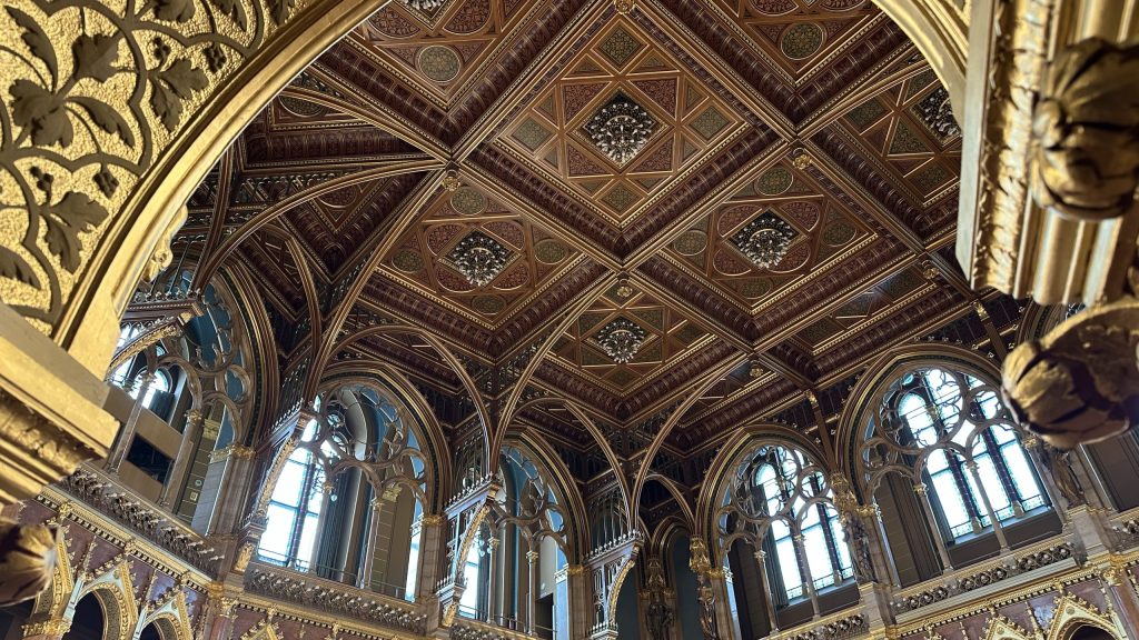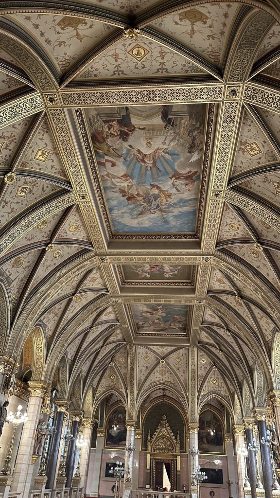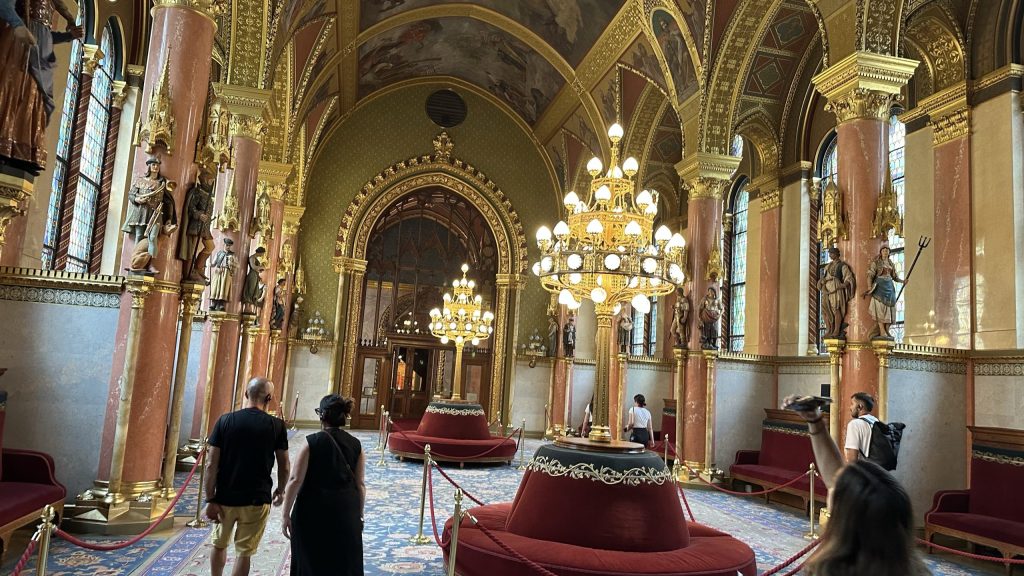 Der Plenarsaal ist, wie alles hier, mit Goldverzierungen an allen Ecken und Enden. Alles sehr pompös. Fast schon erdrückend.
