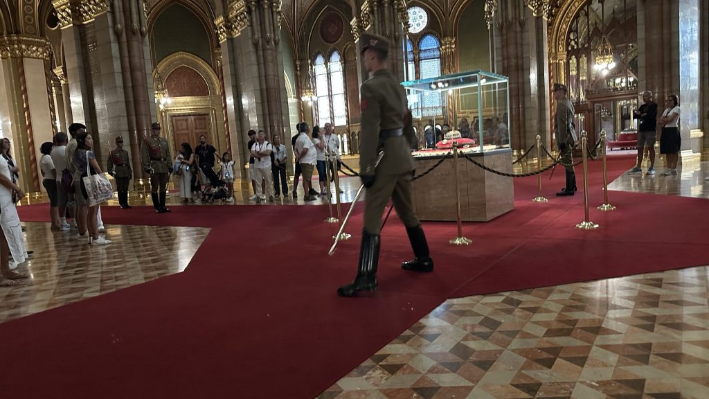 Im Kuppelgebäude ist die Krone mit ihrer besonderen Geschichte ausgestellt, ebenso wie das Zepter, der Reichsapfel und ein venezianisches Schwert. Fotografieren verboten.