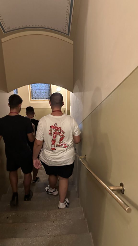 Unser Besichtigungstermin ist für 13:30, um 13:15 bekommen wir auf der Treppe zum Besucherzentrum unsere Tickets.