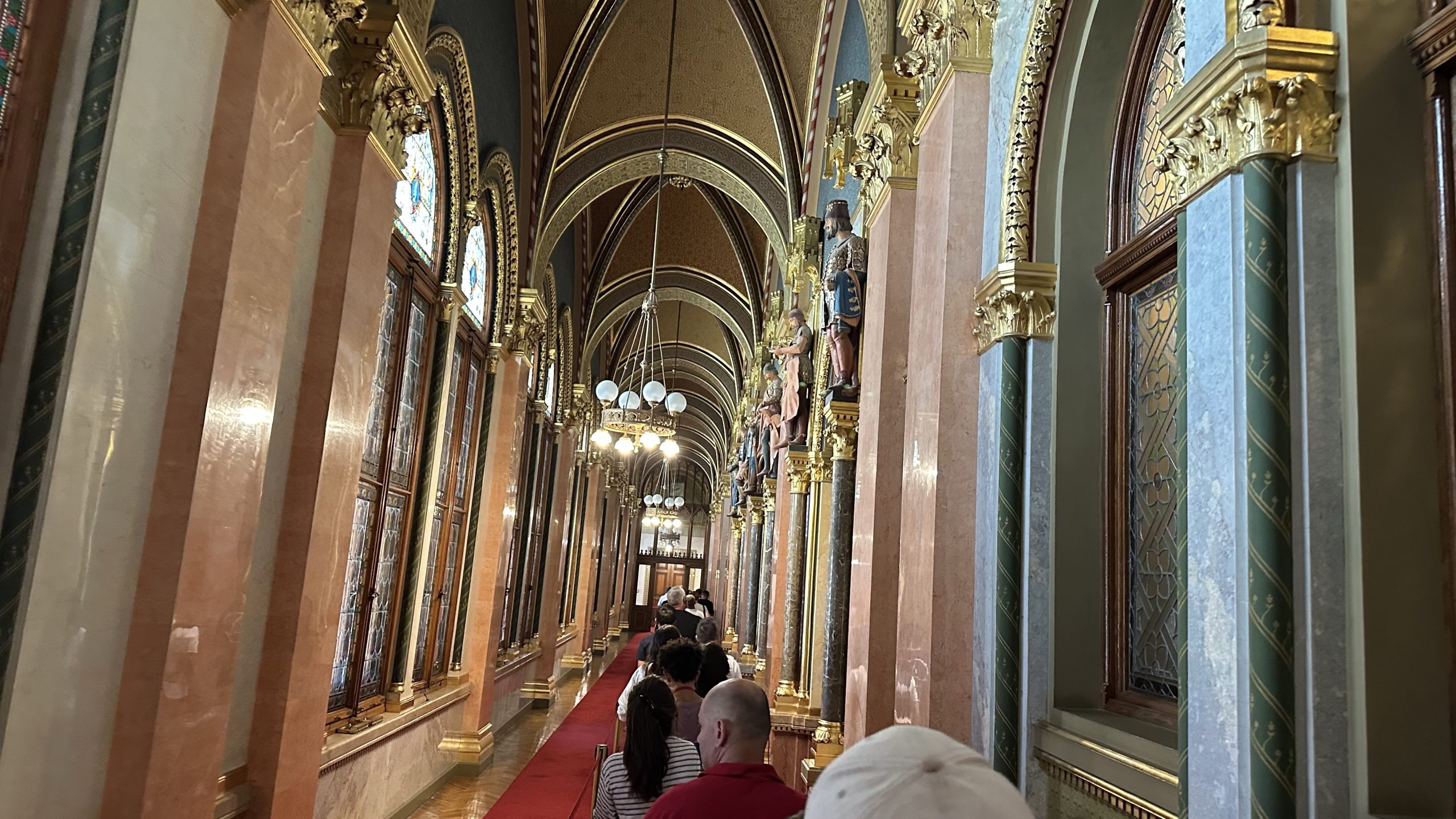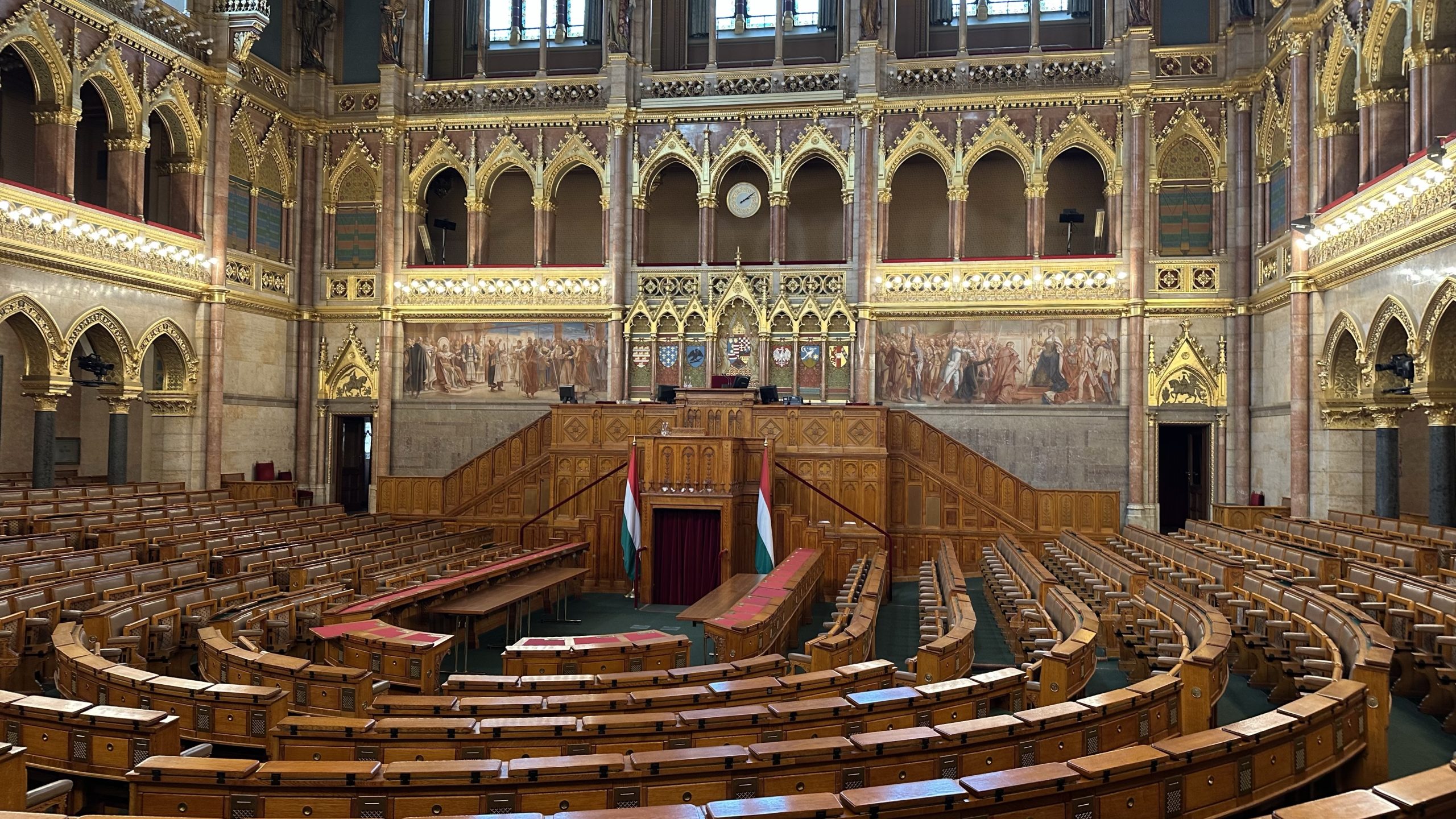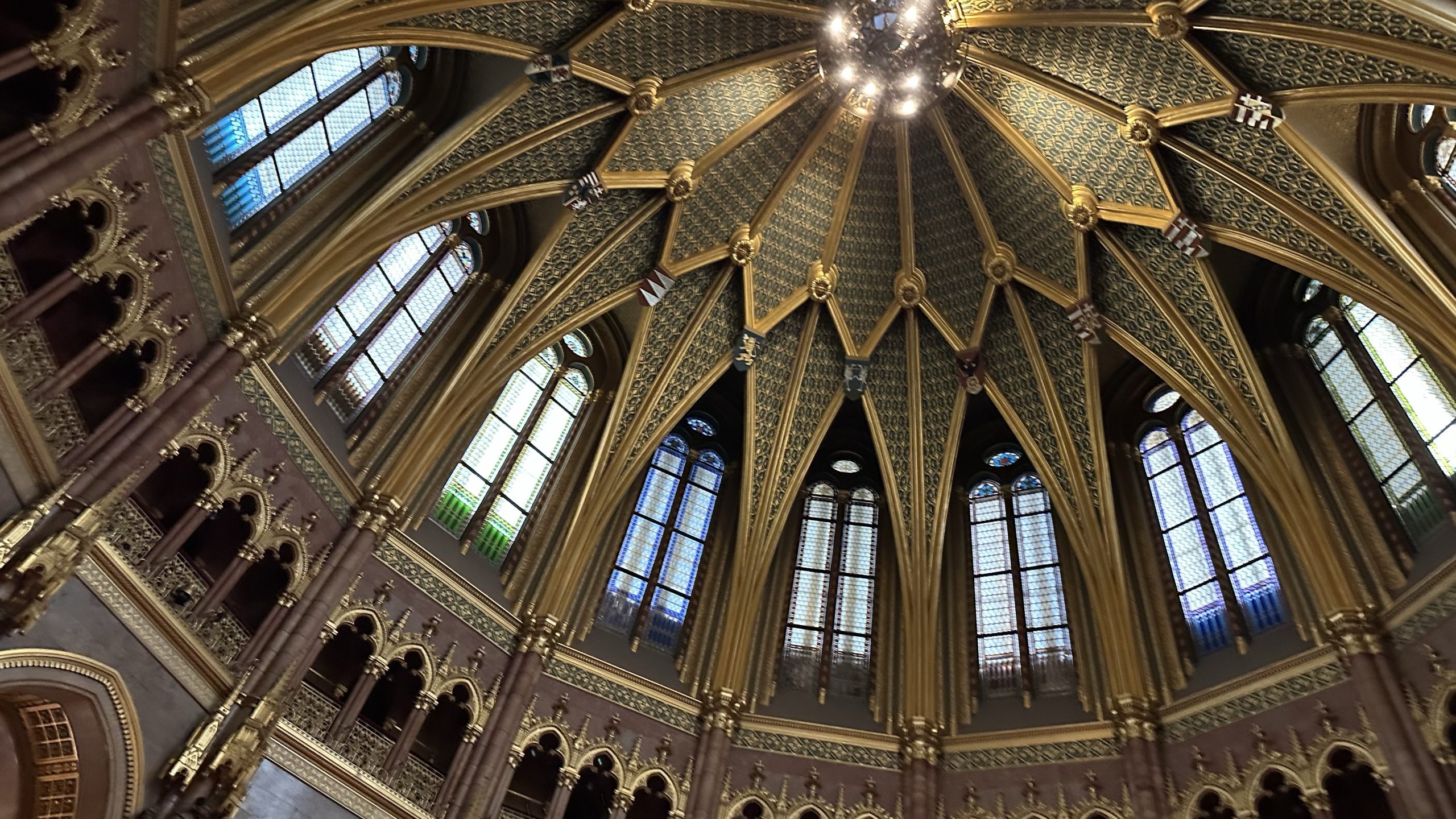 Der Plenarsaal ist, wie alles hier, mit Goldverzierungen an allen Ecken und Enden. Alles sehr pompös. Fast schon erdrückend.