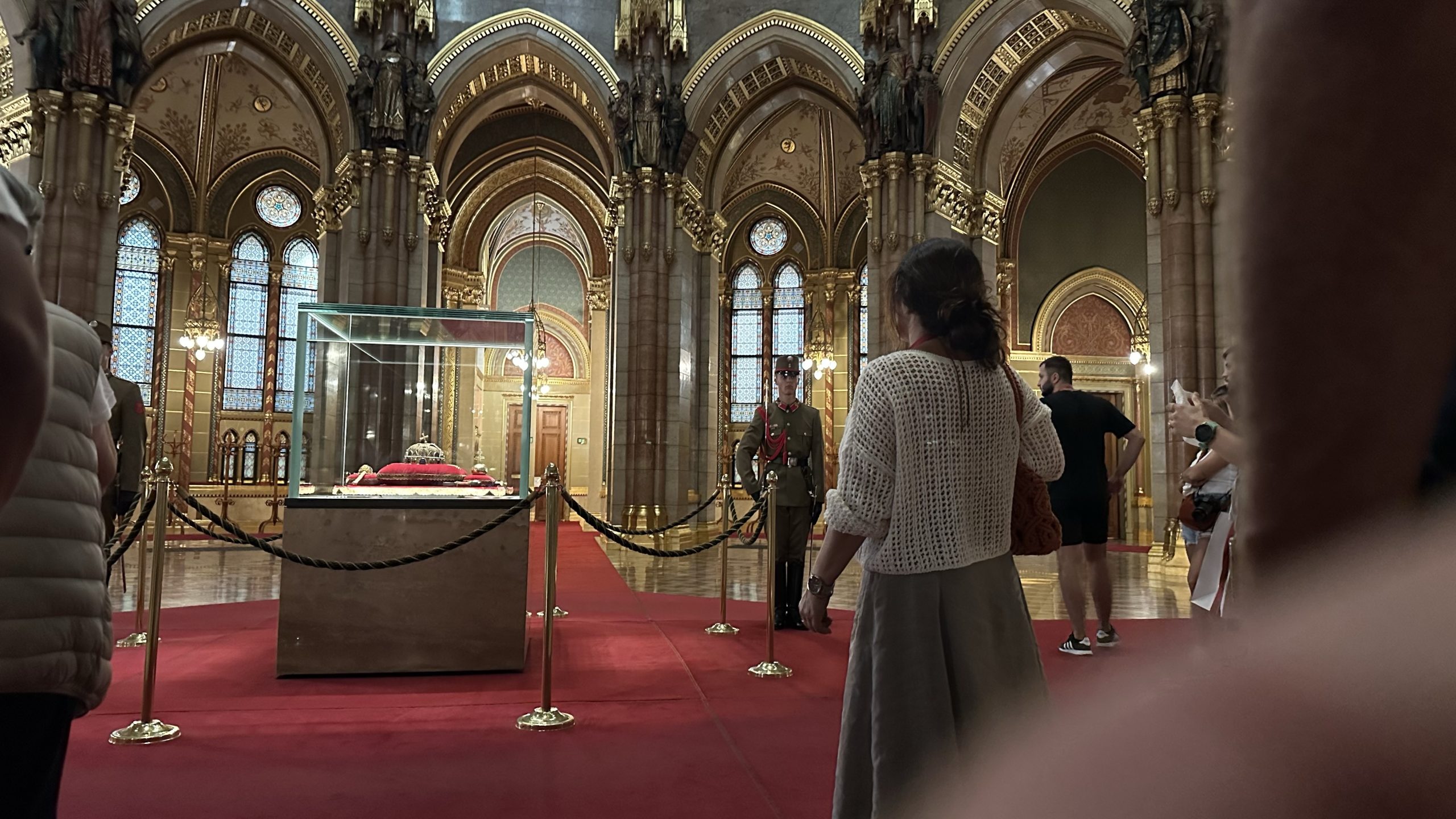 Im Kuppelgebäude ist die Krone mit ihrer besonderen Geschichte ausgestellt, ebenso wie das Zepter, der Reichsapfel und ein venezianisches Schwert. Fotografieren verboten.