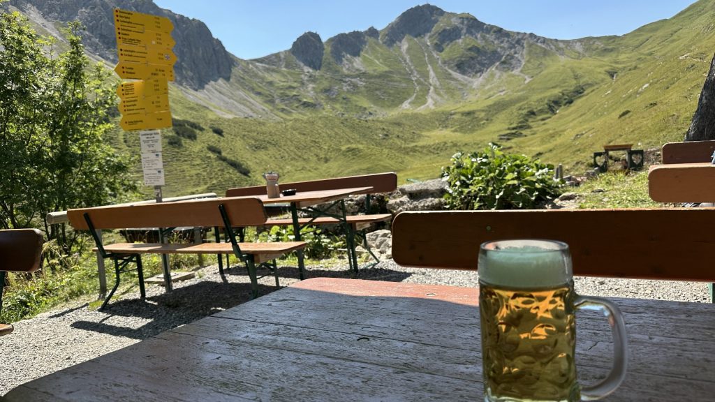 Die Zeitangaben variieren, und je näher wir kommen, umso länger dauert es bis zum Visalpsee. Aber schließlich erreichen wir die Landsberger Hütte auf 1810 m.