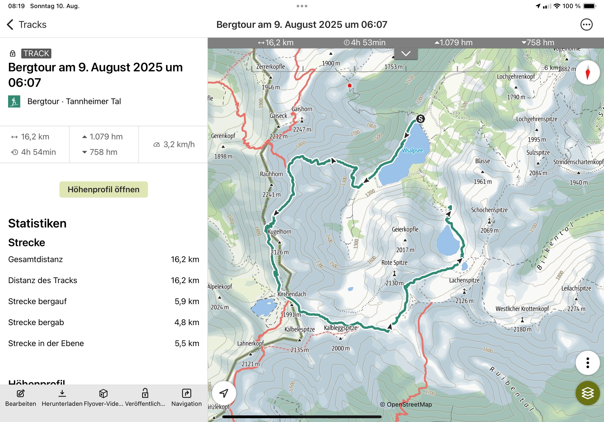Und am nächsten Tag ist dann doch die Track Aufzeichnung bis zum iPhone Totalausfall aufgetaucht: