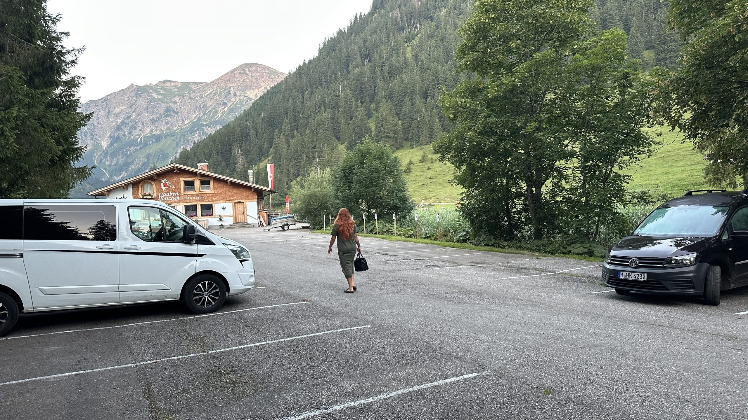 Übernachtet hab ich offensichtlich auf einem Frauen-Camper Parkplatz. Ich bin sicher, in mindestens der Hälfte der Fahrzeuge hier auf dem Parkplatz wird übernachtet.