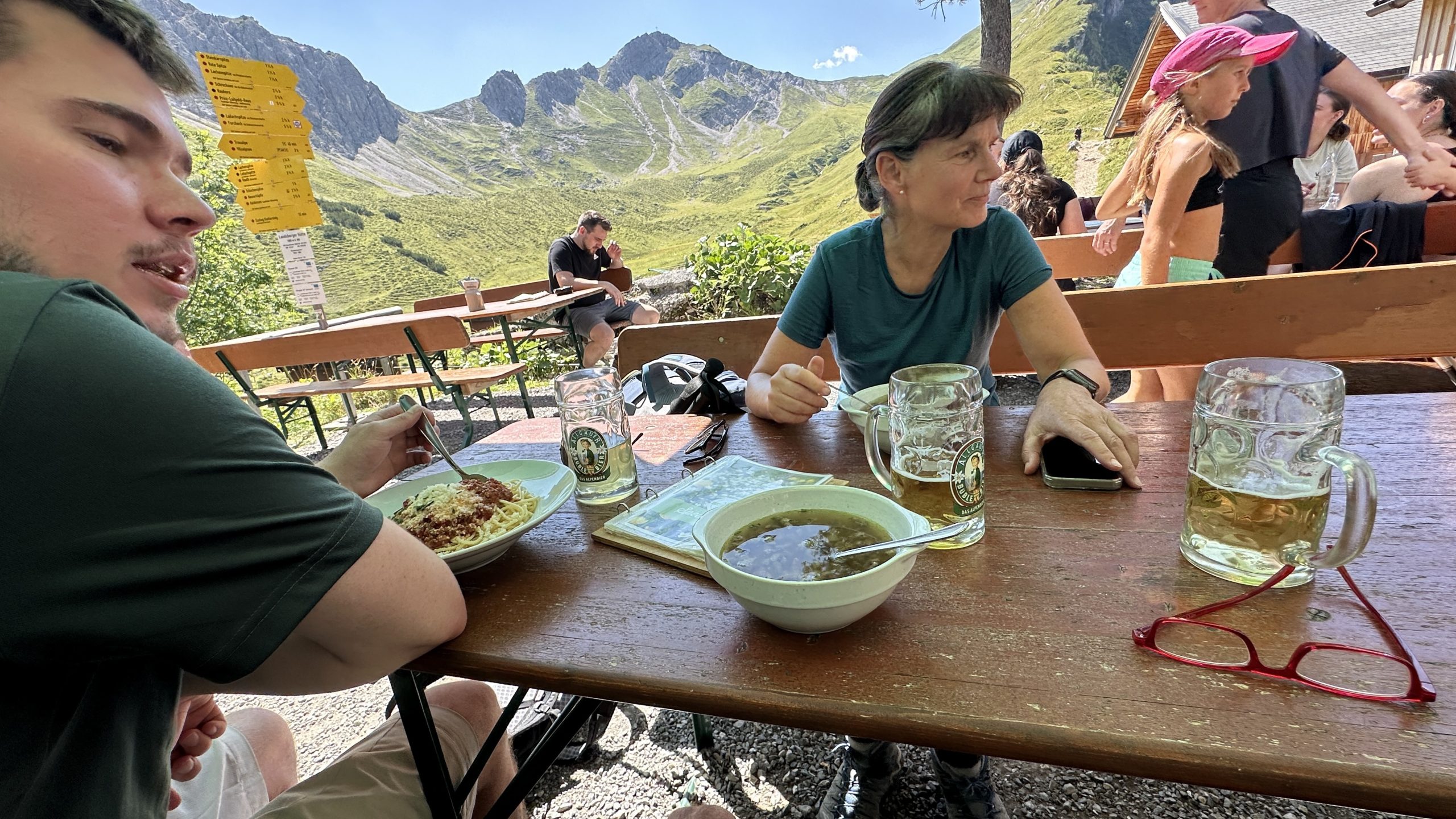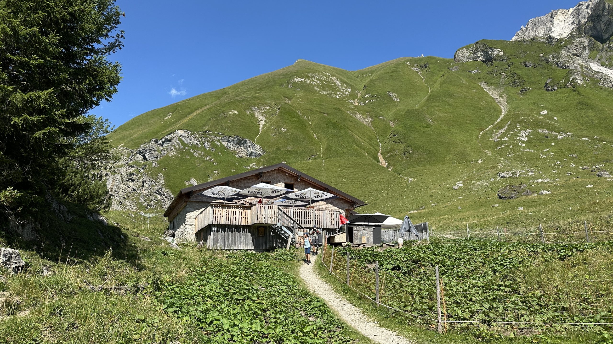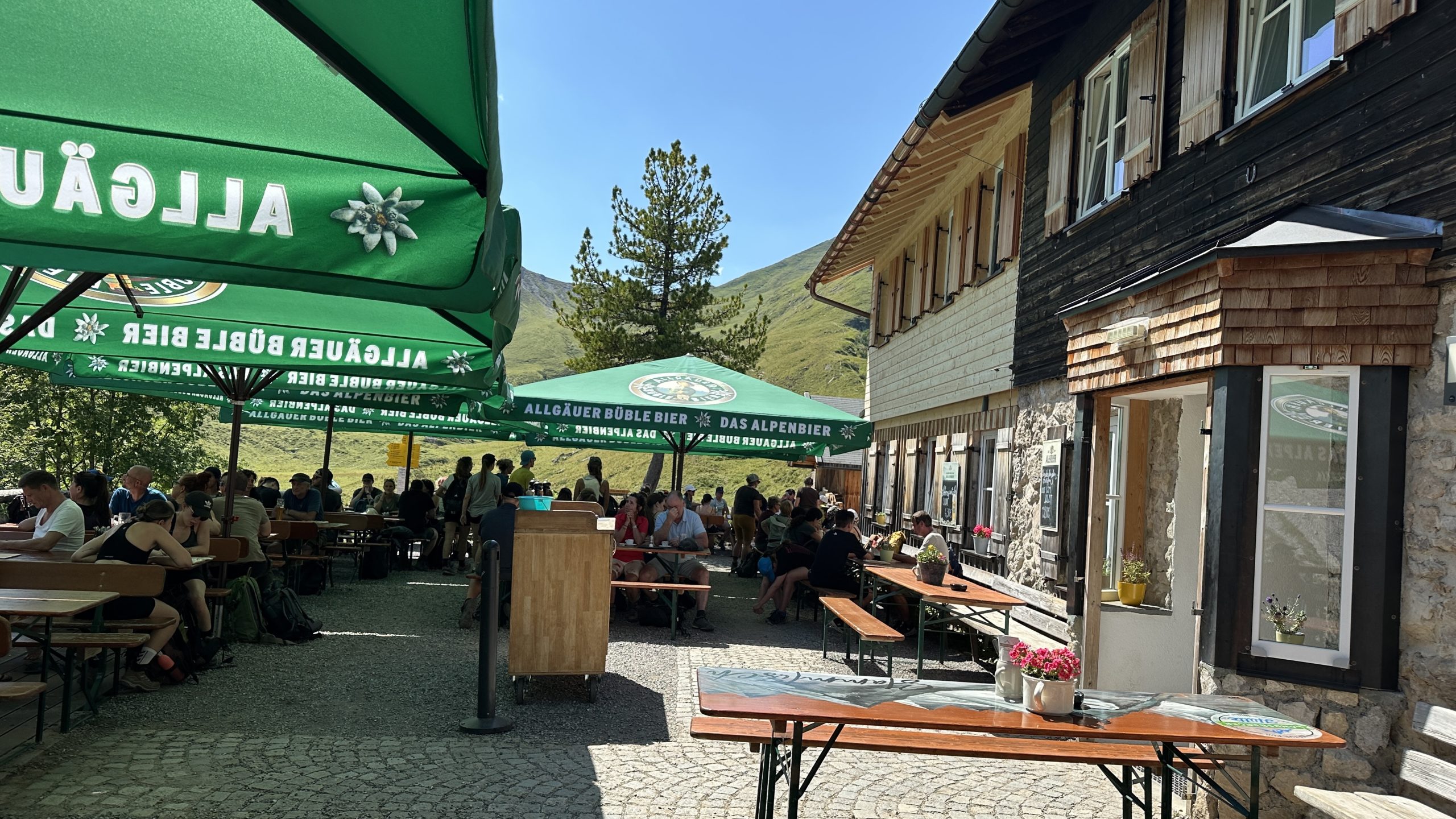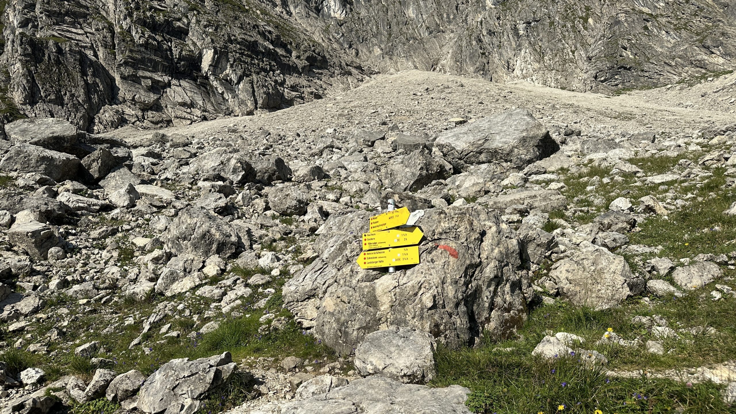 Die Zeitangaben variieren, und je näher wir kommen, umso länger dauert es bis zum Visalpsee. Aber schließlich erreichen wir die Landsberger Hütte auf 1810 m.