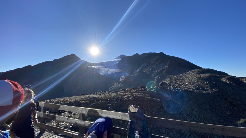 Heute gibt es den Aufstieg zur Similaunhütte. Damit erreiche ich den höchsten Punkt der Tour, und überquere den Alpenhauptkamm ind die Grenze Österreich/Italien. Es geht von der hochalpinen Region ins Tal nach Vernagt. Von Vernagt geht es mit dem Bus nach Algund, Meran.