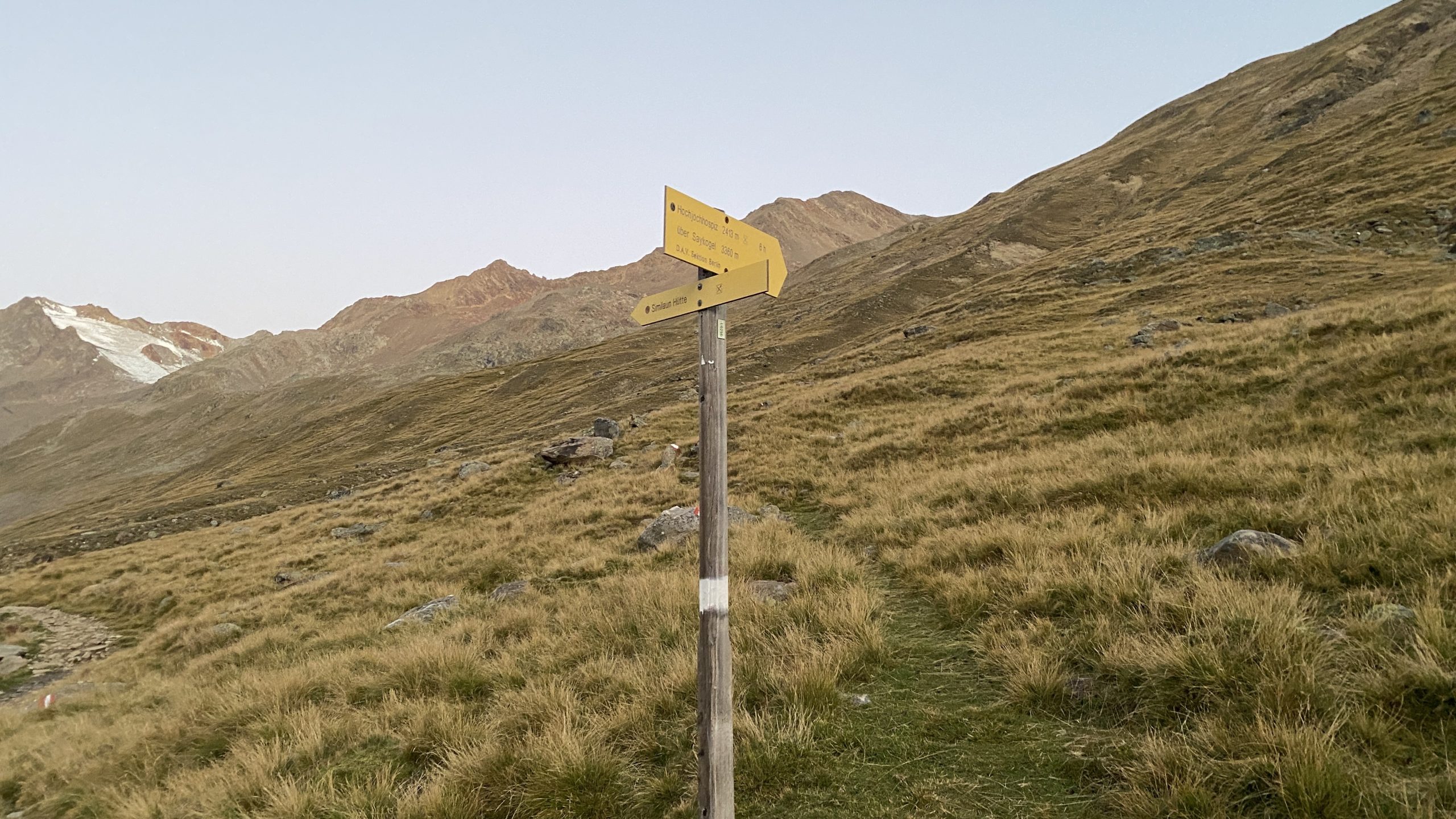 Heute gibt es den Aufstieg zur Similaunhütte. Damit erreiche ich den höchsten Punkt der Tour, und überquere den Alpenhauptkamm ind die Grenze Österreich/Italien. Es geht von der hochalpinen Region ins Tal nach Vernagt. Von Vernagt geht es mit dem Bus nach Algund, Meran.