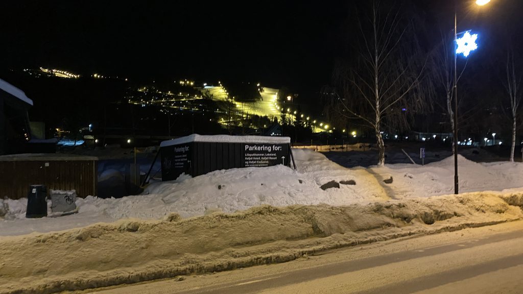 Gegen 20:15 erreichen wir Lillehammer, das man schon von weitem an den beleuchteten Ski Pisten erkennen kann.