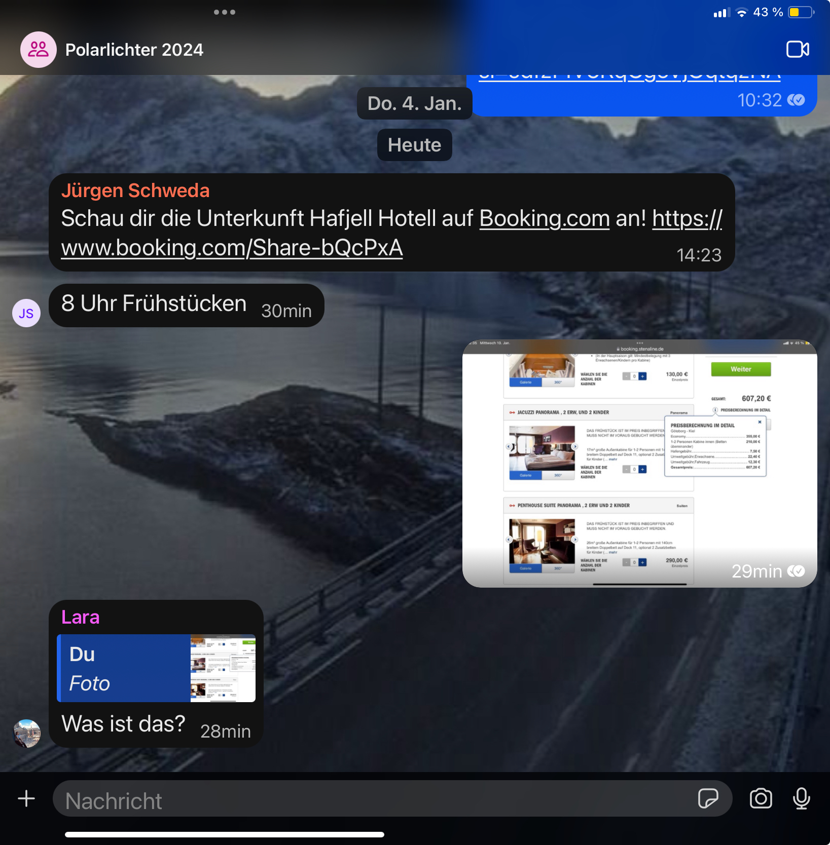 Im Kaffee geben Jürgen und ich die Übernachtungen – Buchung – Berechtigung ab an die nächste Generation.