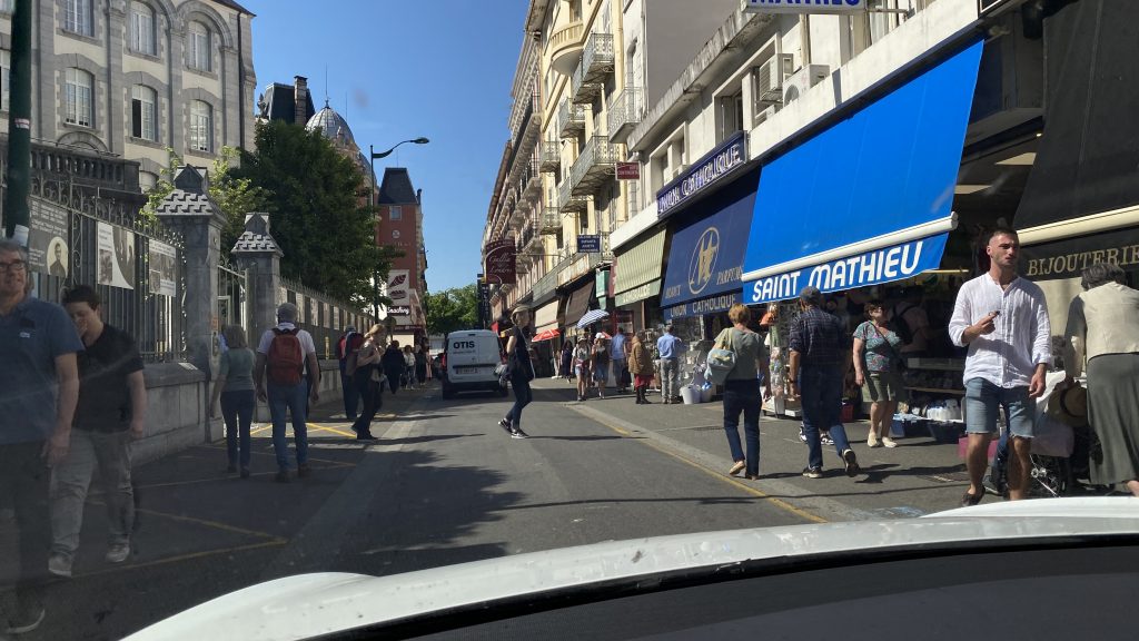 Wenn ich bisher annahm, Viego wäre heftig vom Fahren, dann sollte man mal Lourdes. Die Stadt ist für Fahrzeuge gänzlich ungeeignet. Man fährt durch Straßen die klein, eng und Einbahnstraßen. Und Fußgänger taumeln über die Straße. Das Problem ist, ich habe kein Motorengeräusch. Die sitzen fast auf meiner Haube.