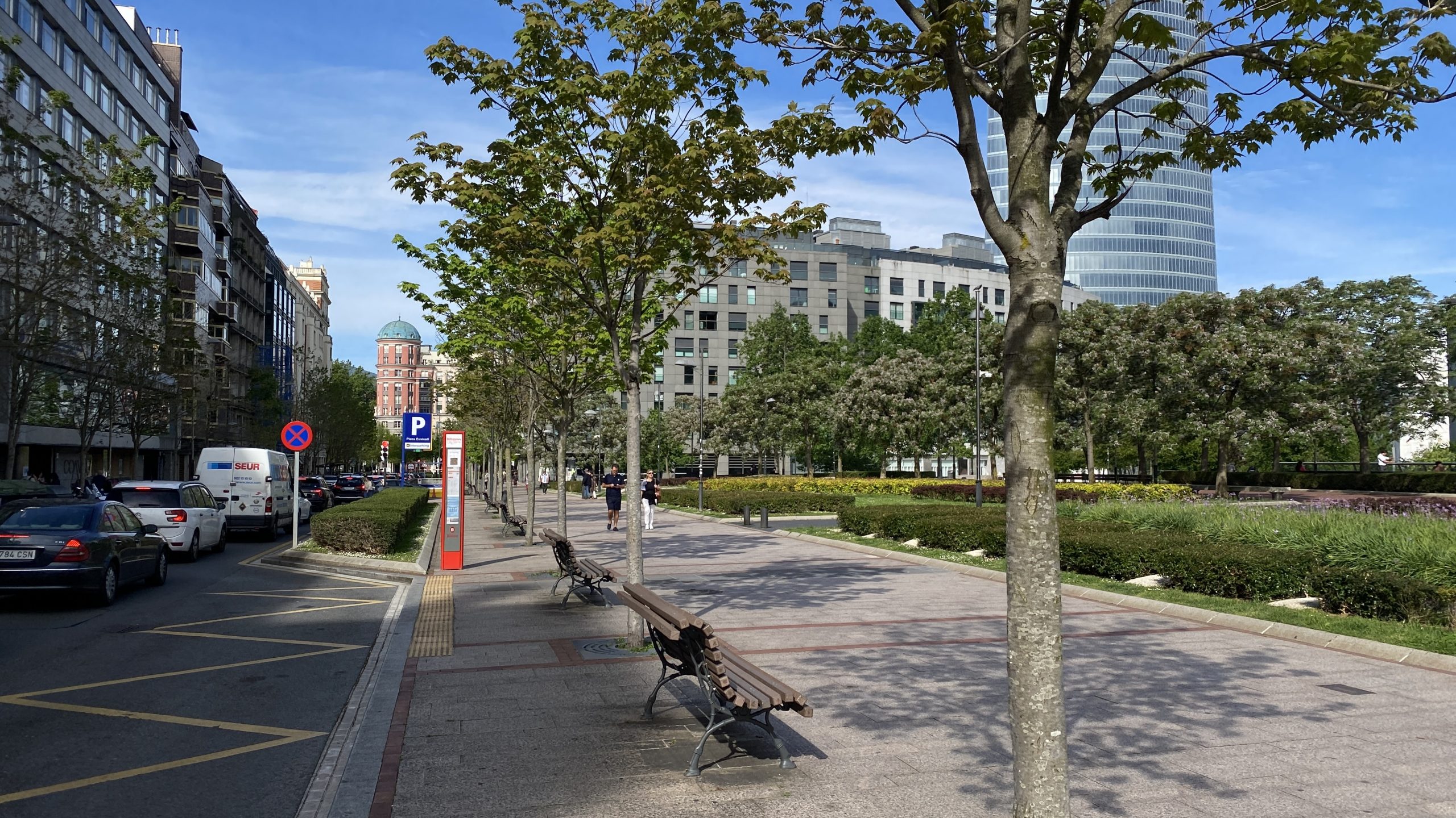 Weiter Richtung Bilbao. Ich hab mir ein zentrales Parkhaus in der Nähe der Autobahn gesucht. Auf Stadtverkehr wie in Viego hab ich nicht so eine Lust. Ich hab eines am Bilbao Stadion gefunden. Die Kommentare waren gut, man soll sich nur den Ausgang merken, da man sonst das Auto nur schwer findet.