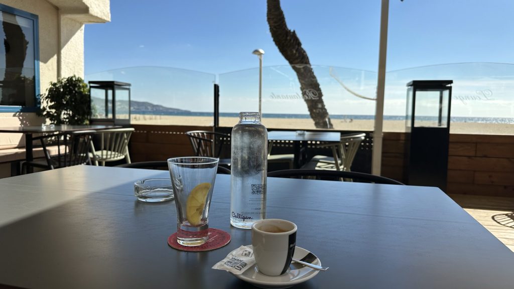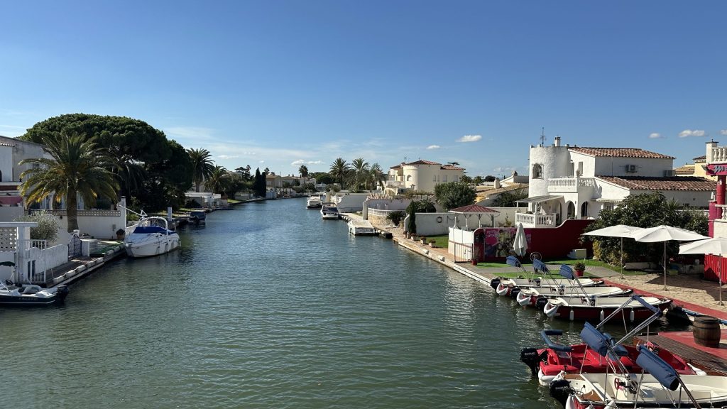 Um 11:20 bin ich in Empuriabrava. Ich leg den Rucksack ab, und vor allem die Wanderschuhe…