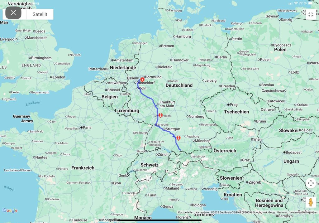 Gefahren bin ich 639 km, und habe 2x geladen. Das ging gut, um 15:30 war ich zu Hause.