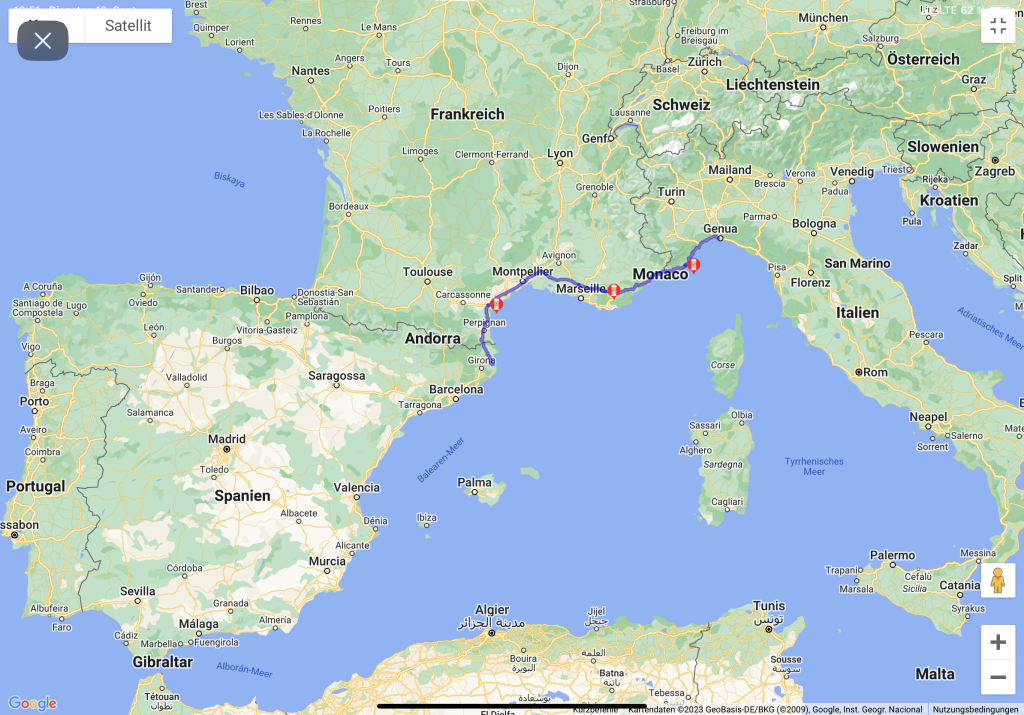 Ich komm gut voran. Den Ausflug nach Monaco hab ich übersprungen, da die Ausfahrt sich bis auf die Autobahn zurück staute.