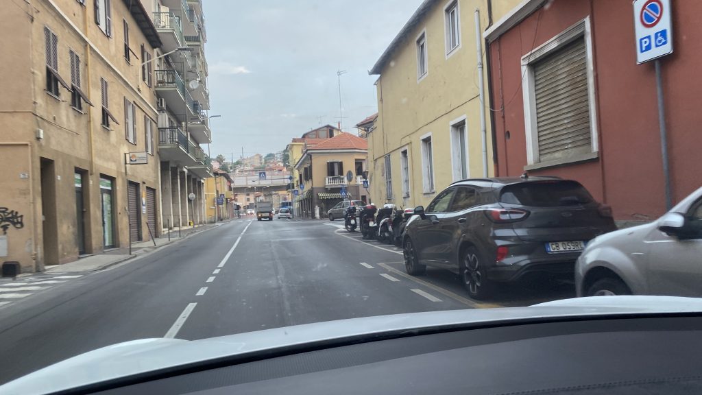 Ich bin früh losgekommen, und hab natürlich die Salami und drei Scheiben Knäckebrot im Kühlschrank im Appartement vergessen. So wird es dann ein yfood Frühstuck am Supercharger Imperia, noch in Italien. Mal sehn wie weit ich heute komme. Um 05:20 konnte ich gut aus Genua herauskommen, fast kein Verkehr, die Autobahnen sind frei. Es gibt hier kaum Baustellen. Aber Brücken und Tunnel. Ich hab fast ein schlechtes Gewissen mit 130 km/h über eine Autobahnbrücke zu fahren. Um kurz vor 07:00 erreiche ich den Supercharger Imperia, auf einem abgesperrten Parkplatz. Tesla Fahrer müssen einen Code eingeben, der auf dem Bildschirm erscheint. Das dauerte einer hinter mir stehenden Italienerin zu lang, sie liess mich mit ihrer Karte auf den Parkplatz.