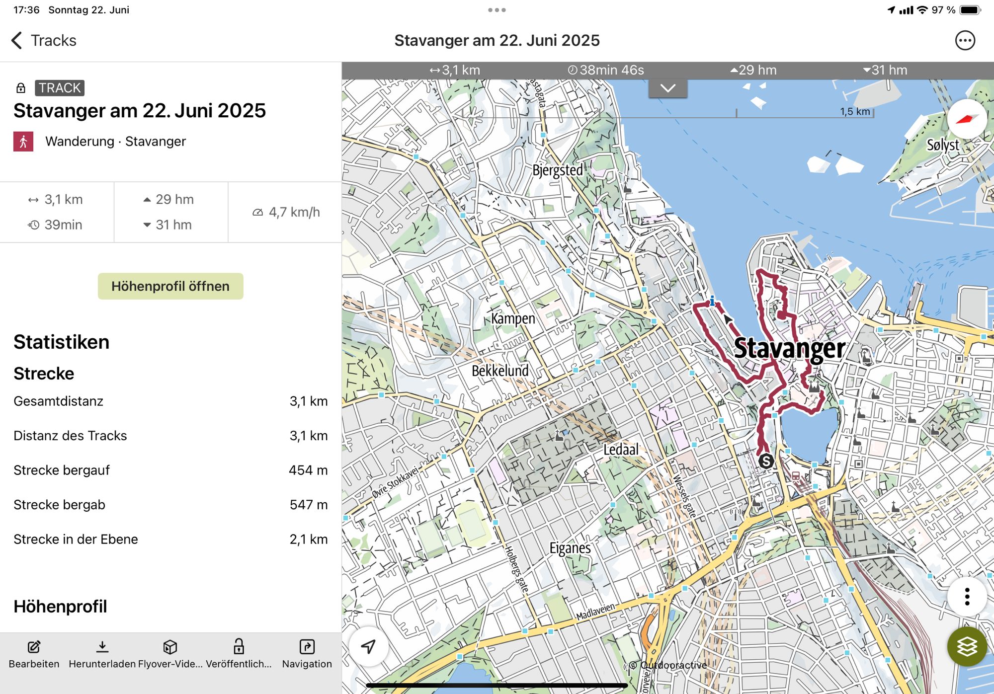 22.06.2025 Wanderung in Stavanger 3,1 km 30 hm