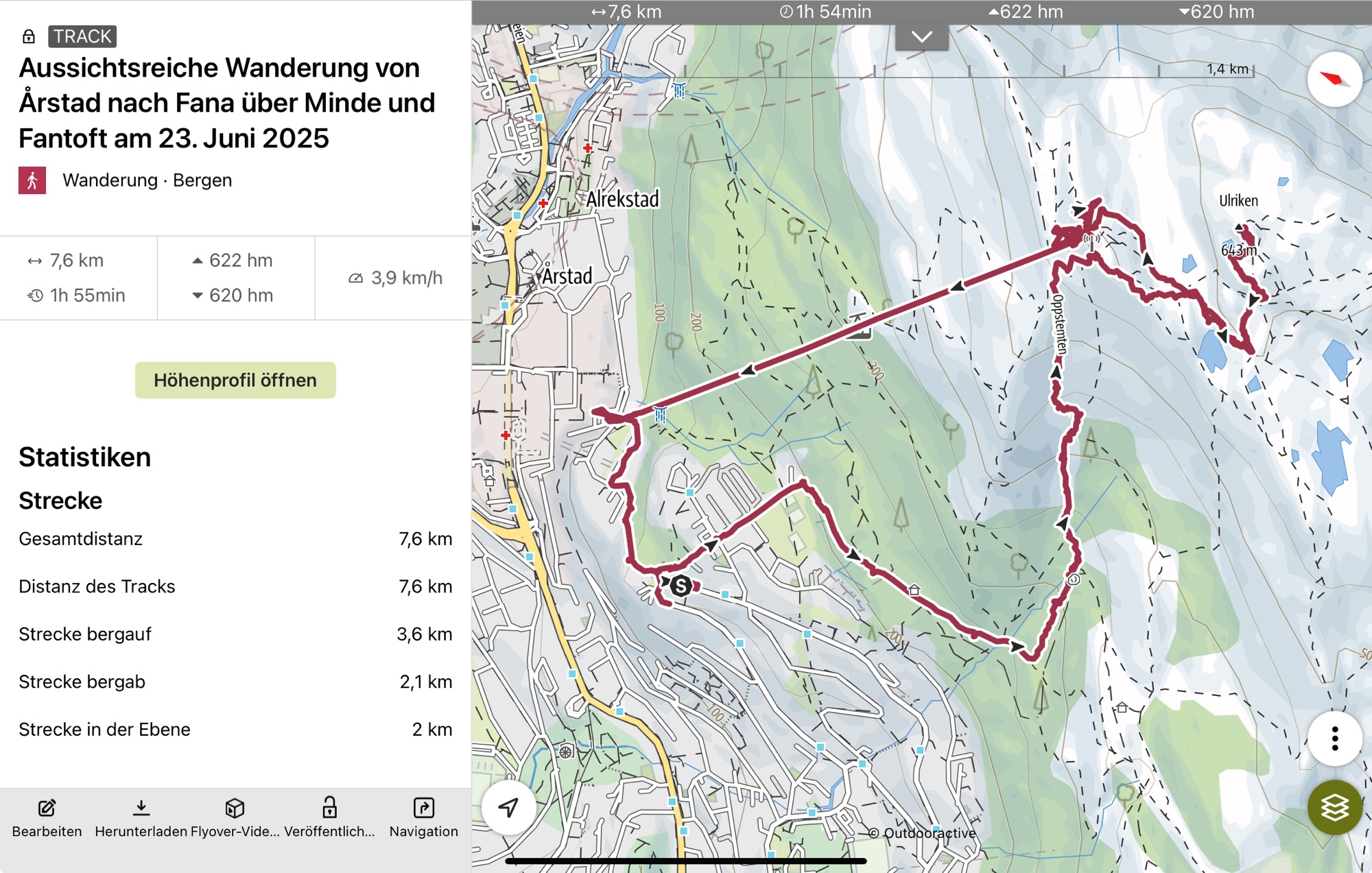 23.06.2025 1330 Stufen zum Ulriken in Bergen 6,0 km 622 hm (zurück mit der Gondel)