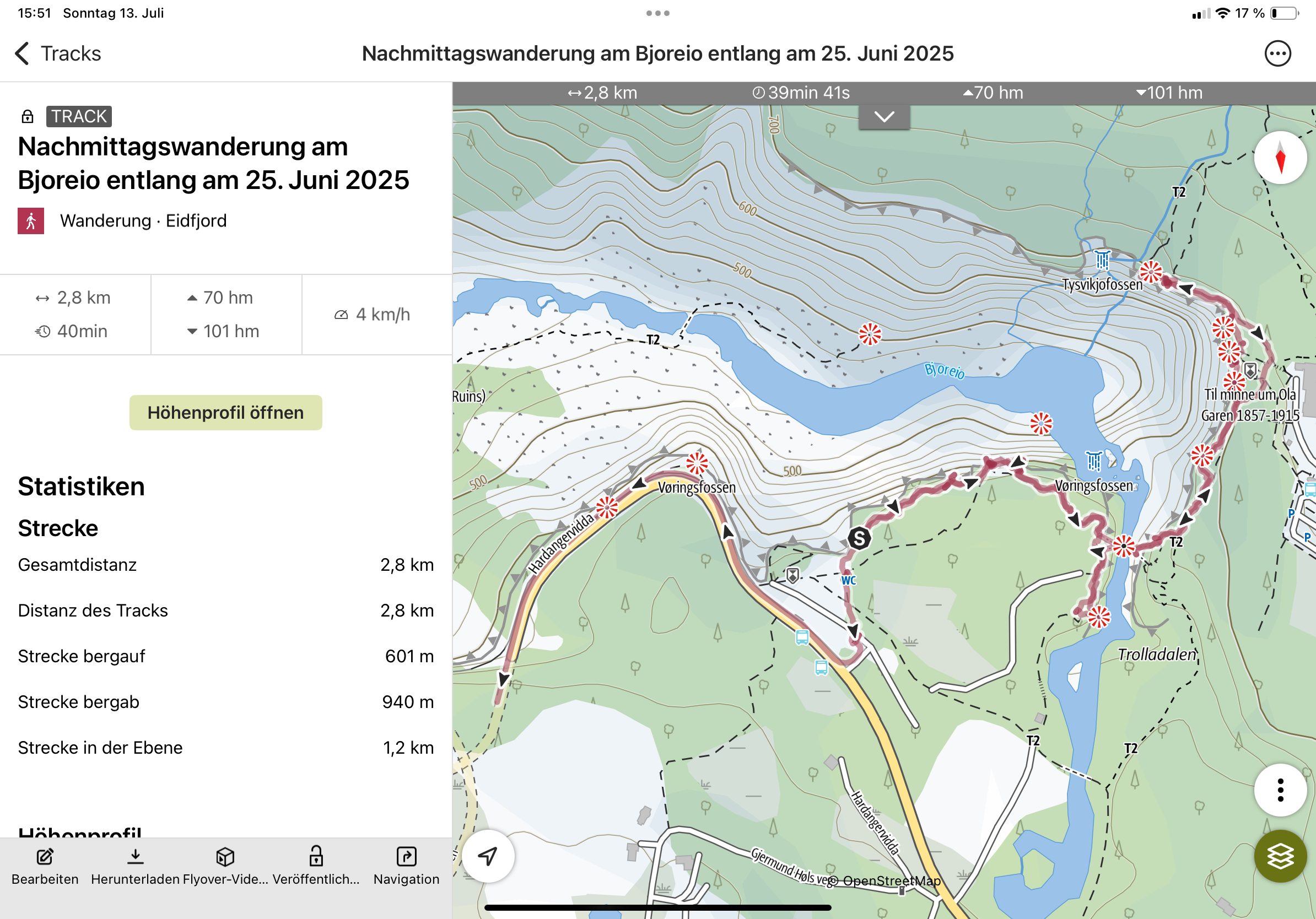 25.06.2025 Wanderung am Vøringsfossen 2,8 km 70 hm
