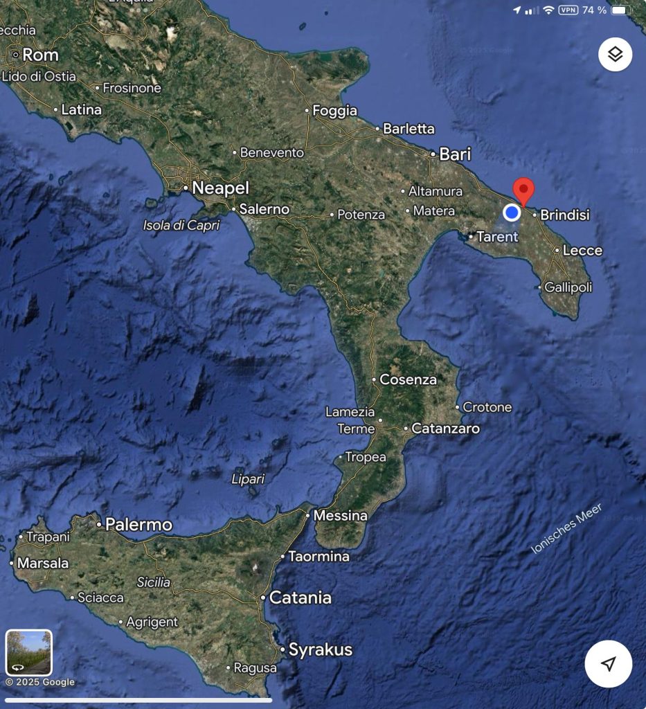 Nach einer Stunde bin ich mit Brindisi fertig. Das liegt sicherlich auch am Wetter. Aber Grok hat noch was für mich: