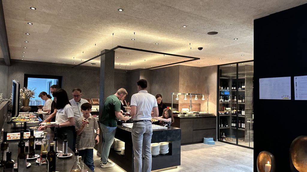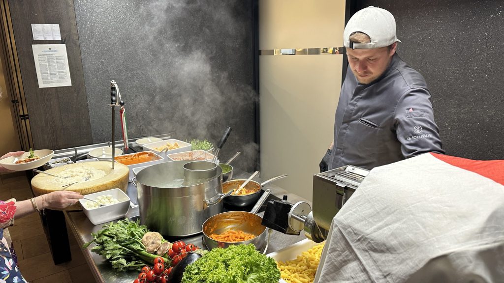 Das Abendessen beginnt mit einem Salat Buffet, wo man selbst hinlaufen muss.