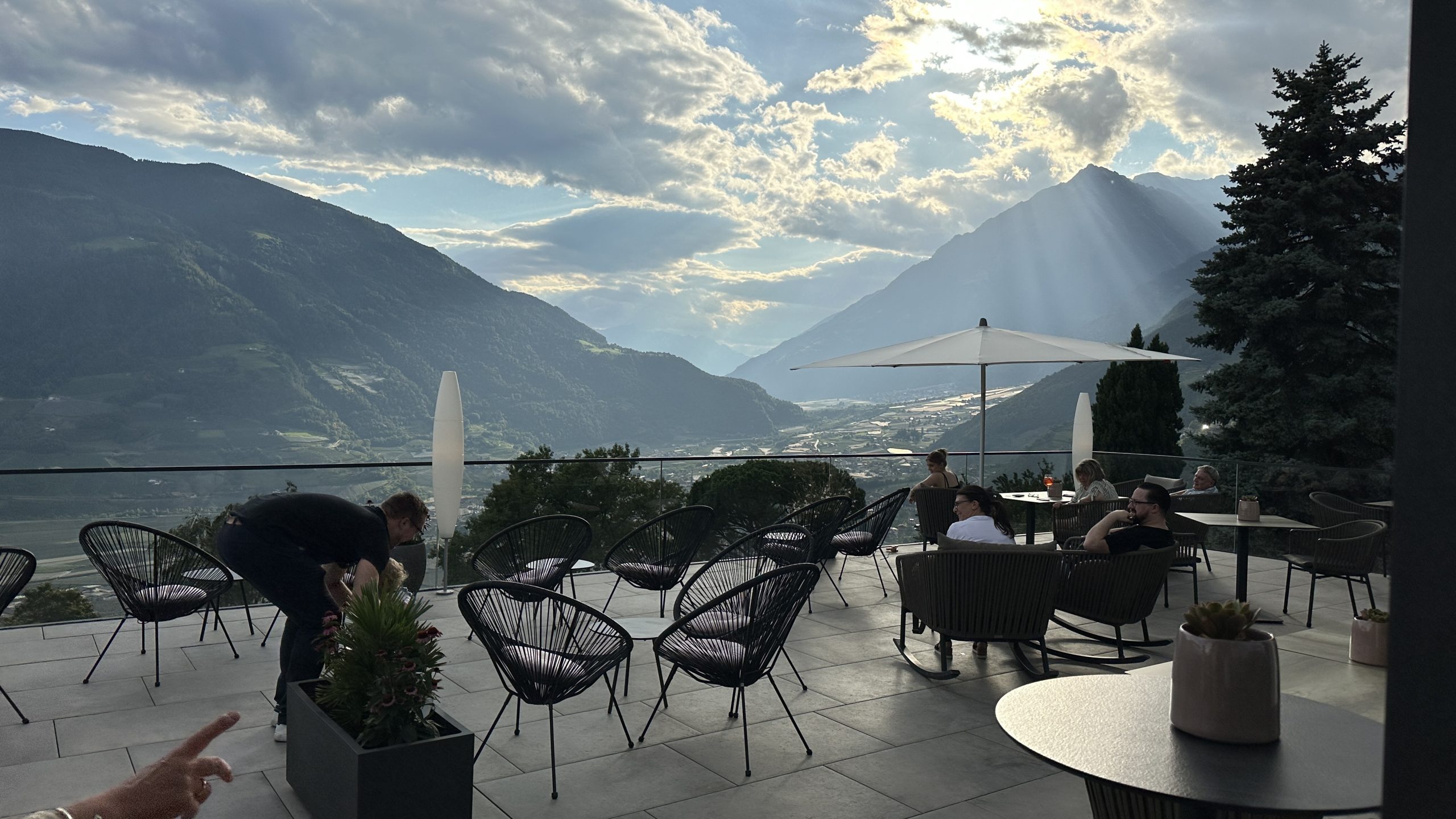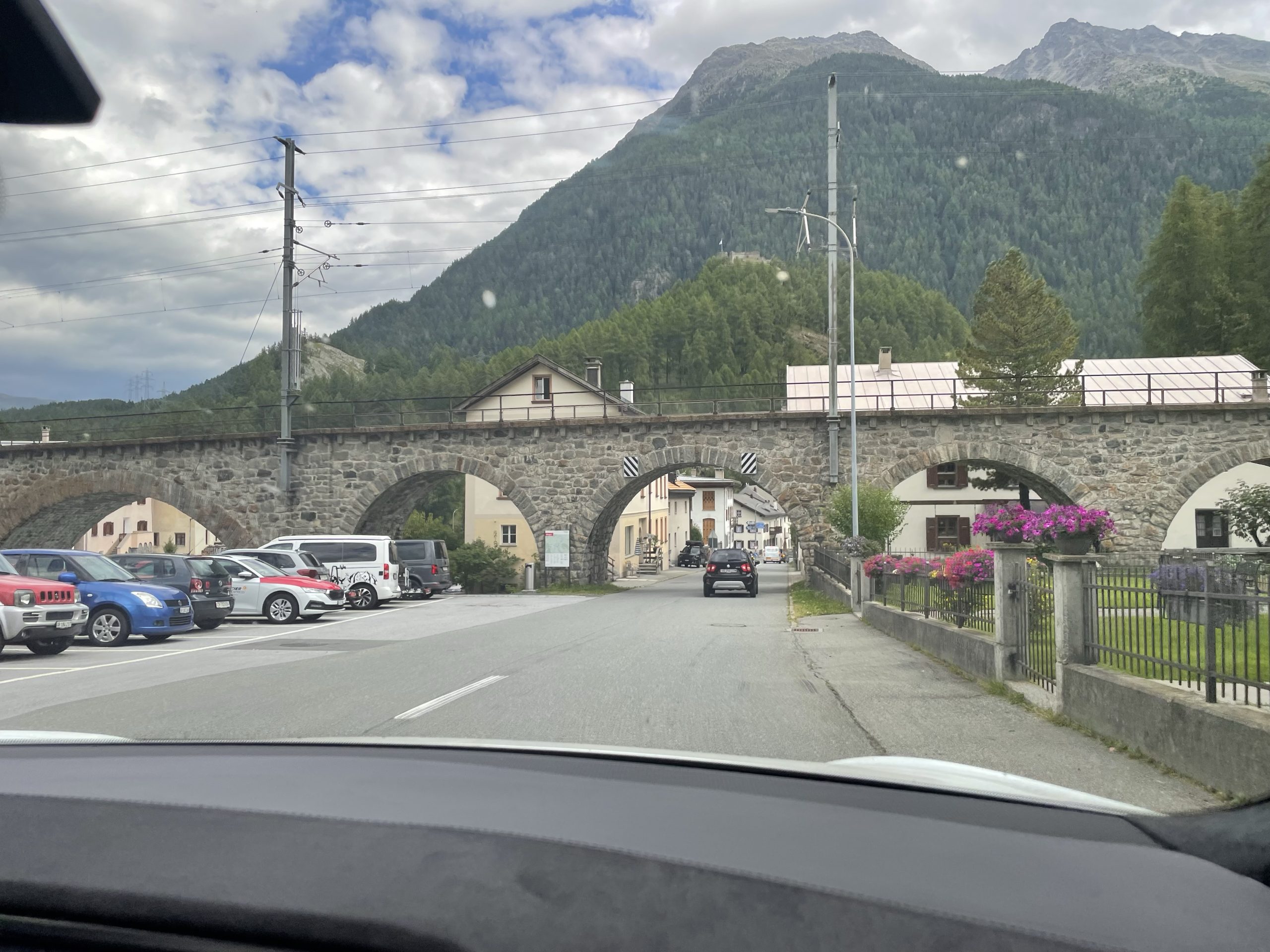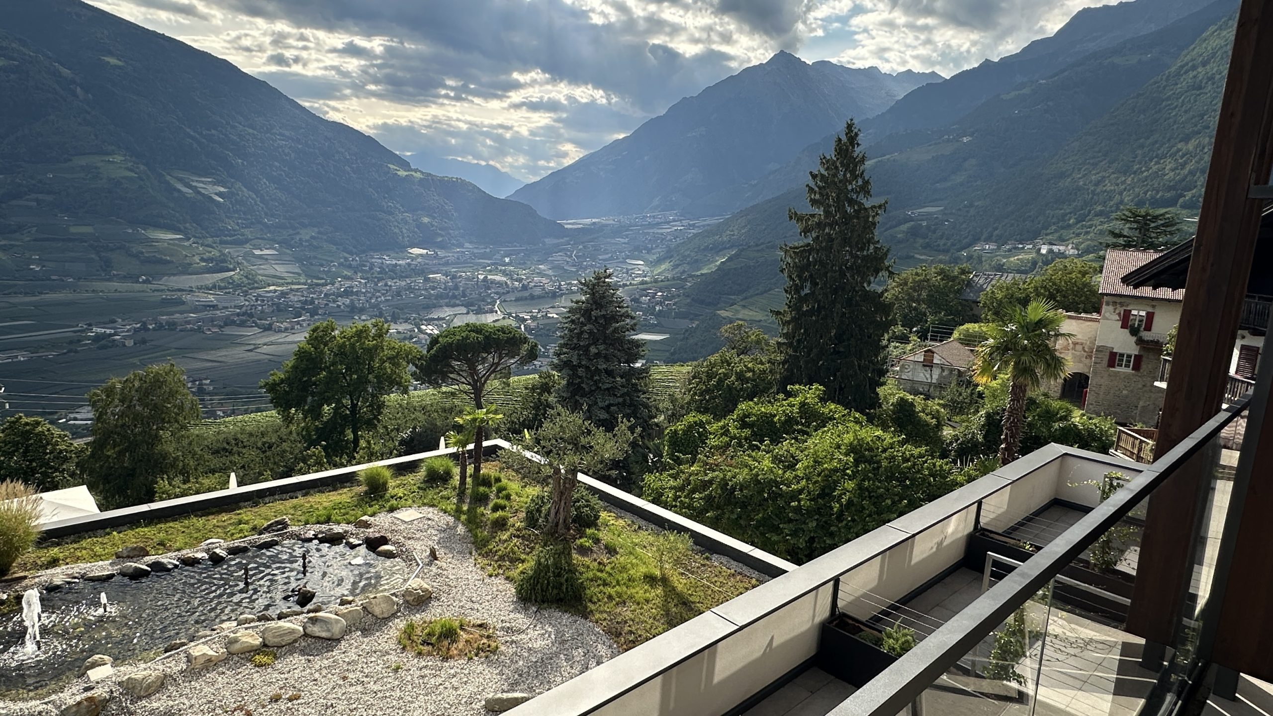 Die Fahrt über die Pässe dauert schon einige Zeit, wenngleich der Verkehr nicht so stark war. Es gab einige Straßenarbeiten mit Ampel. Aber nichts nennenswertes. Um 16:00 erreichen wir Dorf Tirol. Nach zwei weiteren Biopausen. Ich mutiere zum Mädchen…. 😰