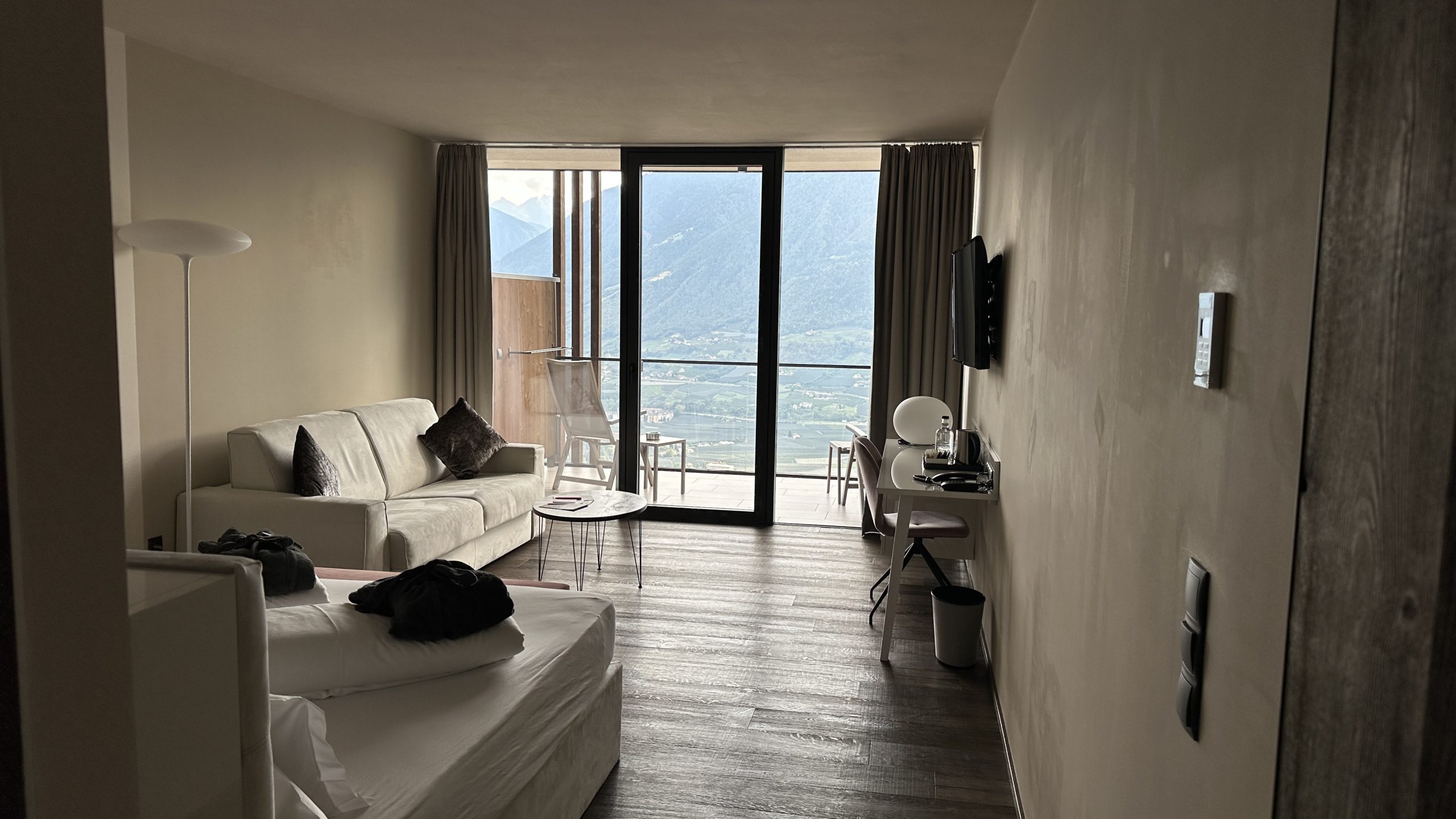 Das erste Abendessen war soweit ok. Das Hotel liegt zentral im Dorf Tirol, umringt von Kirchen. Deren Glocken immer irgendwie läuten. Aber ich finde Glocken in dieser Gegend besser als ein Muezzin ….