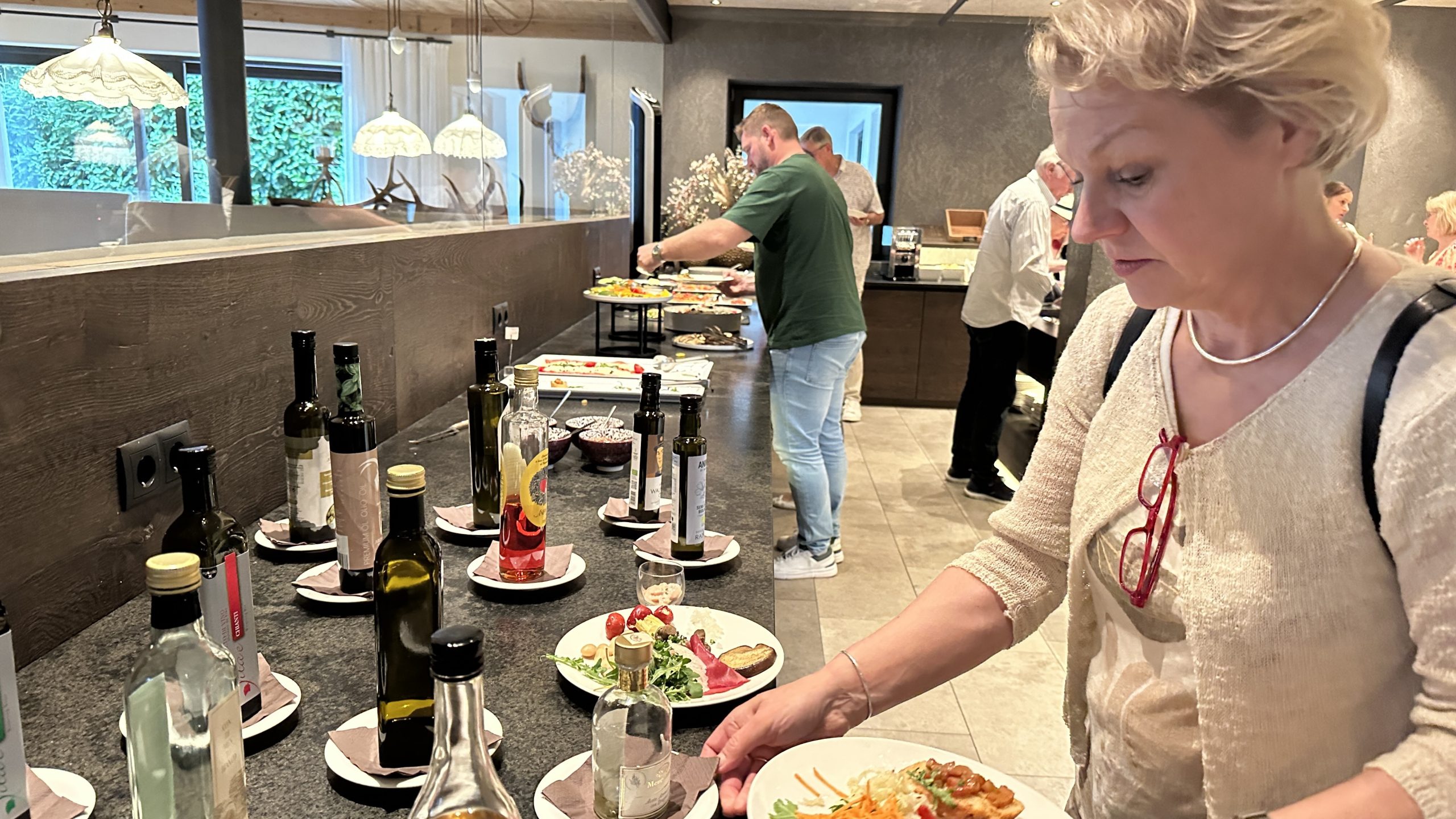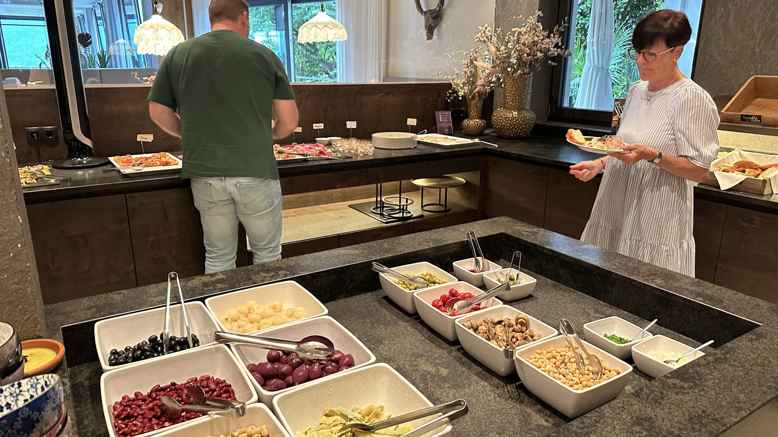 Das Abendessen beginnt mit einem Salat Buffet, wo man selbst hinlaufen muss.