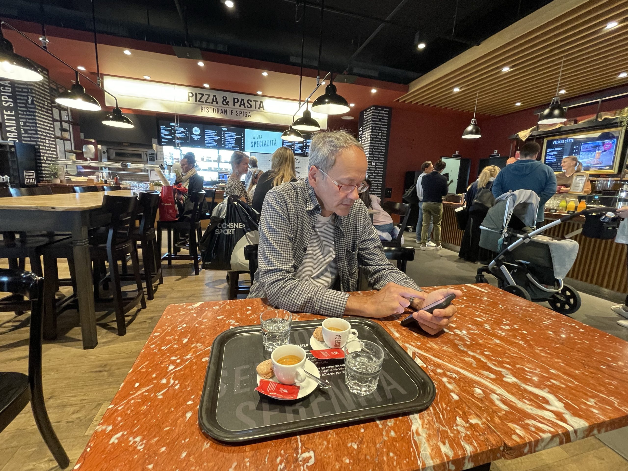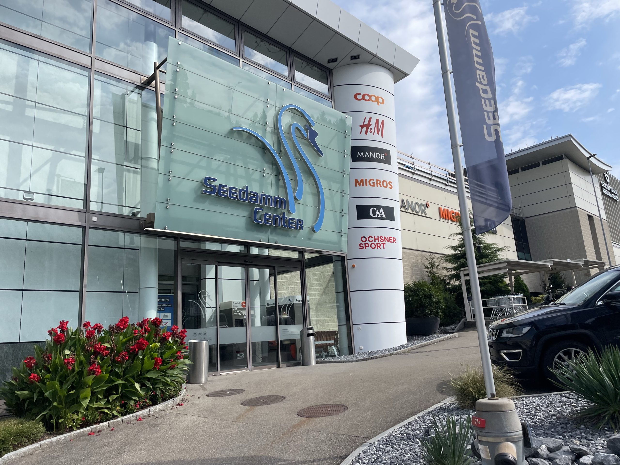Eine Pause gab es an einem Einkaufszentrum in Pfäffikon in der Schweiz. Die Verkehrsführung dahin war etwas abenteuerlich. Und ohne Jürgen bin ich einmal falsch abgebogen. Bei mir sind die Navi Ansagen deaktiviert. Bei Jürgen nicht…