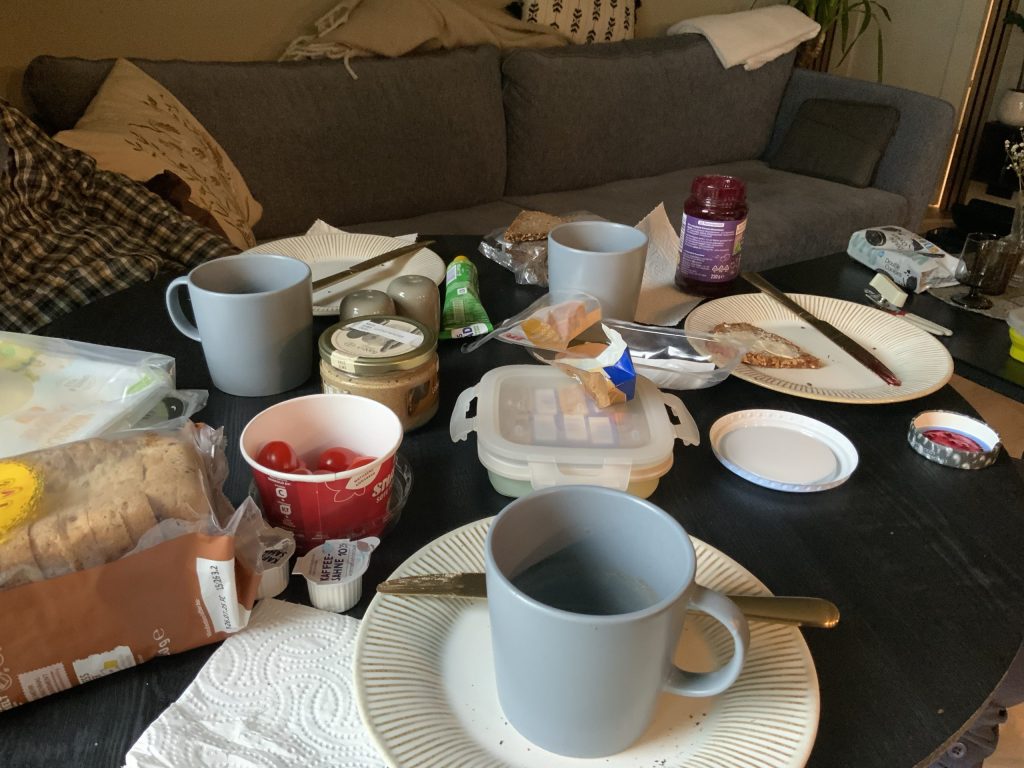 Der Tag beginnt mit Frühstücken.
