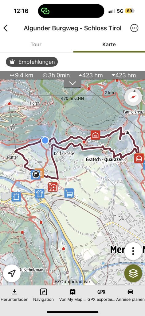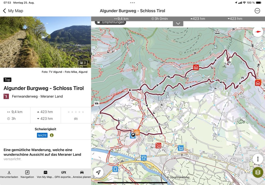 Heute wollen wir den Algunder Burgweg – Schloss Tirol laufen.