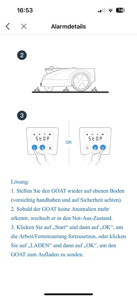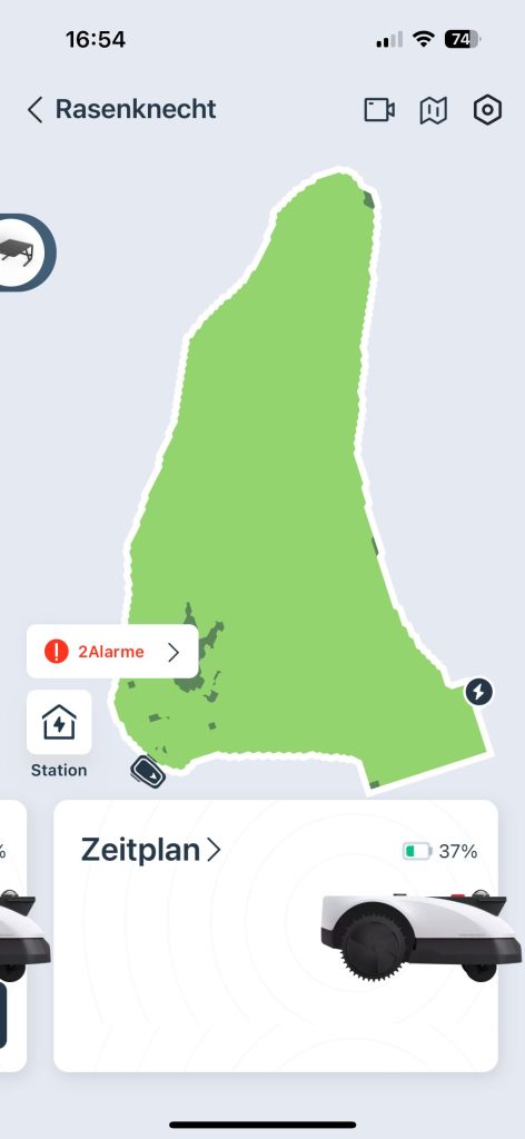 Und dann war da noch der Rasenknecht, der meldet, dass er auf der Seite liegt: